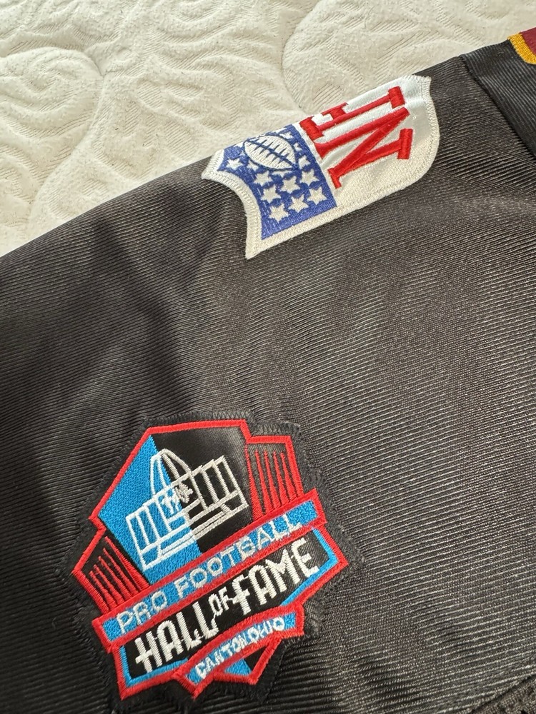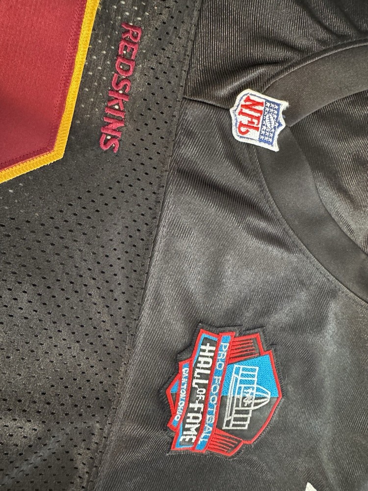 Washington Commanders NFL Throwback Jersey With pro football hall of fame patch All letters and numbers stitched on Pit to pit- 26.5 inches Length- 36 inches Good pre owned condition