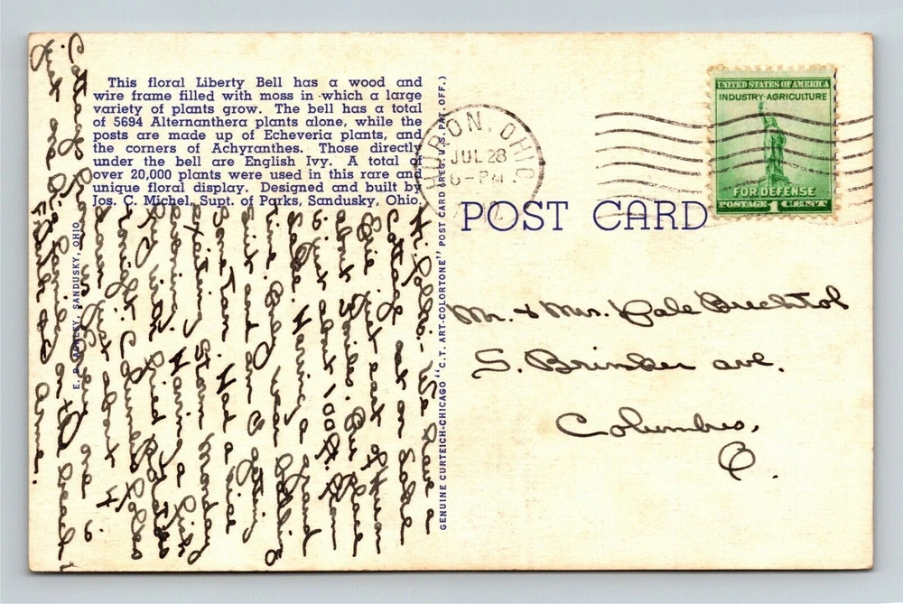 Washington Park Democracy Liberty Bell Sandusky Ohio Vintage Postcard