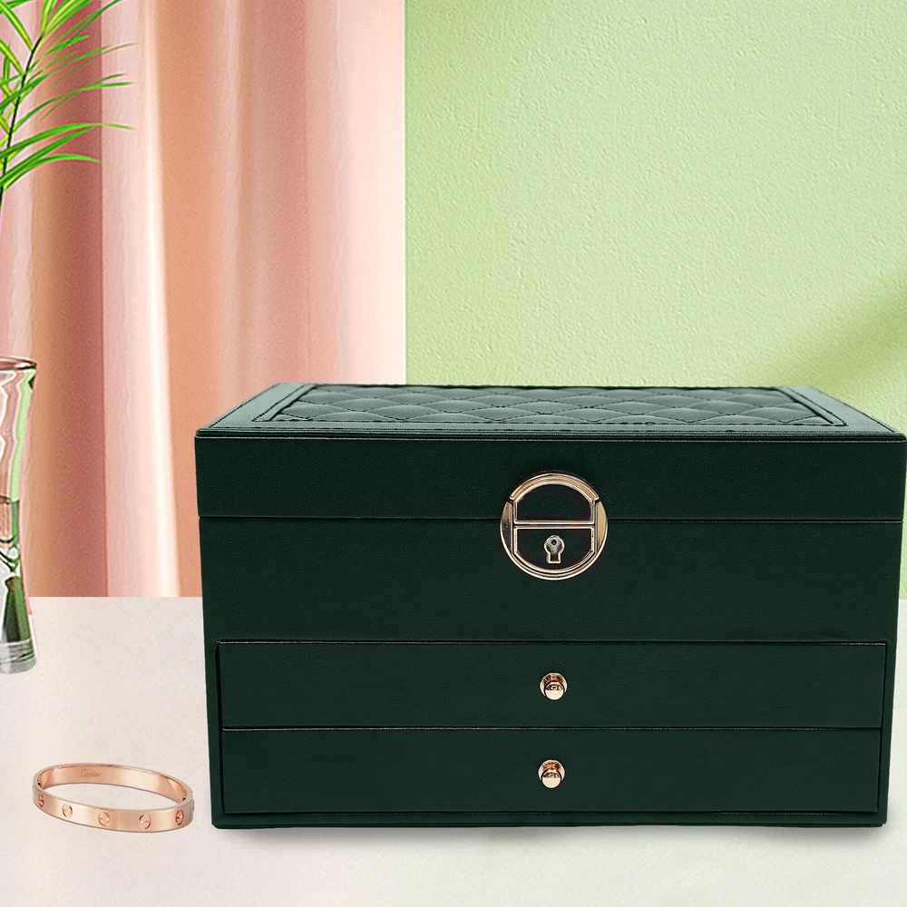 Watch Box Case Jewelry Organizer Watch Holder Display Case PU Watch Storage Box Description To well classify jewelry while keeping them in order, this jewelry box with three layers is your ideal choice. The box treasures not only the valuables but the excellent old days and memories. Wake up in the morning and dress up as you please, bringing you a beautiful mood. Specification Color: Green Material: PU, Velveteen, Zinc Alloy Shape: Rectangular Style: Modern Surface Treatment: Electroplating Process Number of Tiers: 3 Target Audience: Women, Men, Boys, Girls Net Weight: 1.2kg/2.6lbs Gross Weight: 1.5kg/3.3lbs Package Size: 25*19*15.5cm/9*7*6inch Product Size: 23*17*13.5cm/9*6.7*5.3inch Package Included 1* Jewelry Box 1* Key Key Features Premium Material : The PU is odorless , moisture-proof , waterproof , and can resist shock and deformation, allowing this product to be used for a long time. Large Storage Space : Designed with three tiers of multiple compartments, 8 built-in hooks, and a storage bag, this watch box offers plenty of space for sorted storage to suit most watches and jewelry on the market to simplify your lifestyle. Lockable Design : The first tier can be locked to prevent your items from being stolen or lost. Full Pull-out Drawer: The full pull-out design of the drawers display all the jewelry and make it more convenient for you to get it. A Great Gift: It combines timeless design elements with unmatched practicality, and is an ideal choice for gifts. You can present it to your family, friends, colleagues, etc for New Year, Birthday, Valentine's Day, Wedding, Christmas, and Father's Day. Details Velveteen Lining : The soft velveteen lining is anti-slip and comfortable to touch so that the valuables are better cared for. Durable Hardware : The hardware is made of high-quality zinc alloy with an ele ctroplating process , so it can resist wear, corrosion, and rust. Application It can be mainly used to store watches and glasses, as well as bracelets, necklaces, earrings, rings, brooches, and other accessories. It is also a great gift for your mom, wife, husband, daughter, or girlfriend. Notes Please wipe it with a soft cloth for daily care and keep it away from moisture. Please allow the slight color difference caused by the shooting light and 1-3cm error due to manual measurement, and make sure you do not mind before ordering. Payment Delivery details Terms of sales About us Contact us Payment We accept ebay payment 。 Fees such as import duties, taxes are not included in the item price or shipping costs. These charges are the buyer's responsibility. Delivery details Shipping: 2-9 working days to: USA Terms of sales We maintain high standards of excellence and strive for hundred percent customer satisfaction. Feedback is very important to us. We hope that you contact us immediately before you give neutral or negative feedback, so that we can address your concerns. It is impossible to address issues if we do not know about them! About us Your satis faction is our ultimate goal. We work hard to earn your trust and future business. Our certified technicians have tested each item before shipping. The unit comes with 1 year limited warranty on all manufacturing defects. a) If you receive a defective item, you may return it or ask for a discount. Please contact us within 14 days after you receive the package. b) What you returned must be intact and in its original packaging as re? u. Customer is responsible for shipping costs of the returned item. c) We will cover the cost of shipping back t with the shipping rate indicated in the registration page. We will send you a new unit or refund the full payment you paid. Thank you. Contact us Business Hour Business Hour: Monday To Friday: 8:30 AM to 5:00 PM (Beijing China time) Due to time zones, our reply to your questions may not be immediately. But within above working time, we will reply your email within 24 hours. If it's non-workdays, please kindly be patient and wait till Monday. Please contact us with ebay message. Please feel free to contact us if you have any questions. Monday To Friday: 8:30 AM to 5:00 PM (Beijing China time) Due to time zones, our reply to your questions may not be immediately. But within above working time, we will reply your email within 24 hours. If it's non-workdays, please kindly be patient and wait till Monday. Please contact us with ebay message. Please feel free to contact us if you have any questions.