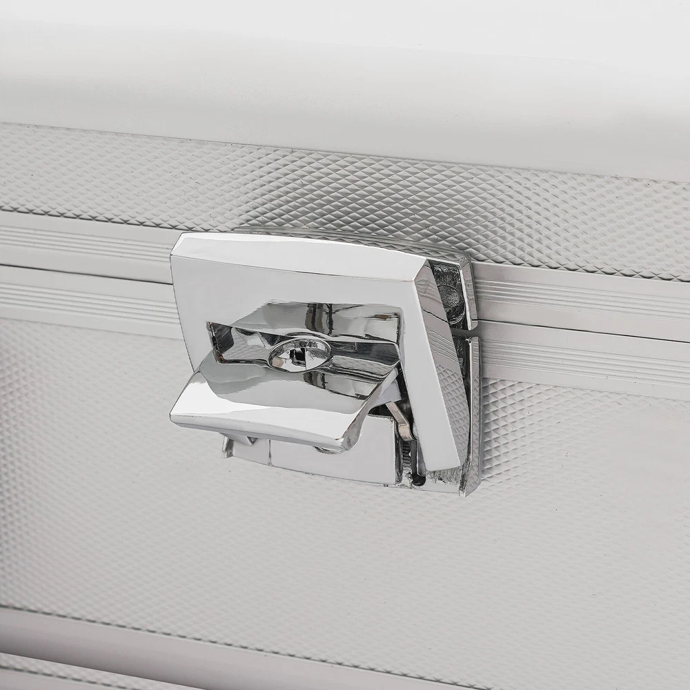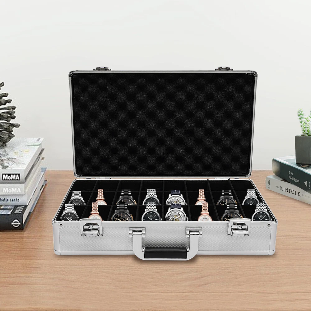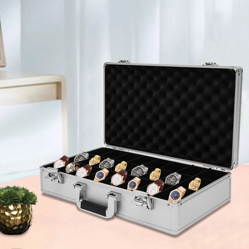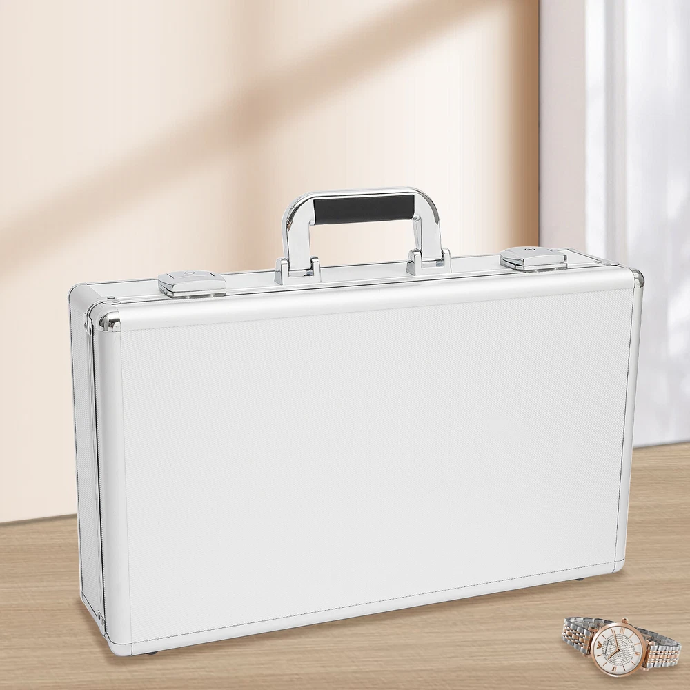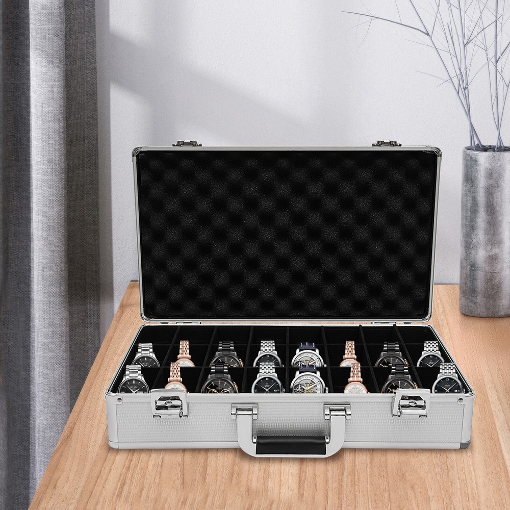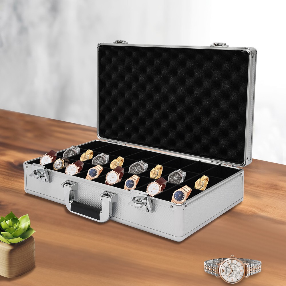 Specification Color: Silver Type: Watch Storage Case Shape: Rectangular Material: Aluminum, ABS, Plastic, Wooden Board, Sponge Process: Veneer Number of Grids: 24 Each Grid Size(L*W): 8.5*4cm/ 3.3*1.6inch Product Size: 47.5*28*8cm/ 18.7*11*3inch Package Size: 50.5*32.5*12cm/ 19.88*12.8*4.74inch Net Weight: 1.8kg/ 3.97lbs Gross Weight: 2.5kg/ 5.51lbs Package Included 1* 24-Grid Watch Case 2*Keys Watch Case Jewelry 24 Grid Aluminum Alloy Box Watch Case Briefcase Design Gift Watch Case Jewelry 24 Grid Alumi Detail Color: Silver Type: Watch Storage Case Shape: Rectangular Material: Aluminum, ABS, Plastic, Wooden Board, Sponge Process: Veneer Number of Grids: 24 Each Grid Size(L*W): 8.5*4cm/ 3.3*1.6inch Product Size: 47.5*28*8cm/ 18.7*11*3inch Package Size: 50.5*32.5*12cm/ 19.88*12.8*4.74inch Net Weight: 1.8kg/ 3.97lbs Gross Weight: 2.5kg/ 5.51lbs Package Included 1* 24-Grid Watch Case 2*Keys Detail Color: Silver Type: Watch Storage Case Shape: Rectangular Material: Aluminum, ABS, Plastic, Wooden Board, Sponge Process: Veneer Number of Grids: 24 Each Grid Size(L*W): 8.5*4cm/ 3.3*1.6inch Product Size: 47.5*28*8cm/ 18.7*11*3inch Package Size: 50.5*32.5*12cm/ 19.88*12.8*4.74inch Net Weight: 1.8kg/ 3.97lbs Gross Weight: 2.5kg/ 5.51lbs Description This watch case is made of high-quality materials, which are wear-resistant and sturdy. The large capacity of 24 compartments allows you to easily store various watches. It can keep your watches neatly stored in this beautiful storage case, protecting them from dust, scratches, and falling injuries! Key Features Build to Last: The high-quality aluminum frame, ABS panel, plastic handle, and wooden partition give it strong, wear-resistant, and waterproof features, allowing you to store the watch in a box with confidence. Large Capacity: The 24 compartments are of moderate size (3.3*1.6 inches) and are suitable for storing watches of various sizes, providing you with ample space to store your watches. High Safety: It is equipped with two keylocks, which can effectively protect your precious watch from loss, giving you strong security and reliability. Easy to Carry: The lightweight weight of 3.97 lbs and the convenient handle on the watch case make it easy for you to carry around. Convenient to Clean: The detachable watch pillow makes it easy for you to clean it. Thoughtful Design: The built-in soft watch pillow can protect your watch from damage. The wooden partition divides it into 24 compartments for easy access, sorting and storage of precious watches. Strict Package: The dual packaging of bubble bags and cardboard boxes can effectively protect the product from damage during transportation as much as possible. Ideal Gift: It is an ideal gift for family, colleagues, and friends on birthdays, Valentine's Day, weddings, Christmas, and New Year. Exquisite Appearance: The silver appearance, combined with the classic black interior, harmonizes with your various watches, showcasing an elegant temperament. Customer Service: We aim to provide quality products and services. If you have any problems, please free to contact us. We will reply and solve the problem for you as soon as possible. Details Anti-slip Rubber Mat: The anti-slip rubber mat at the bottom and back can help you place the watch case smoothly and firmly, preventing wear and tear on the casing. Plastic Handle: The plastic portable handle makes it convenient for you to carry the watch case. Application It can accommodate normal-sized men's and ladies' watches and can be used for displaying and protecting your precious watches. Notes Please note that watches are not included. Please allow the slight color difference caused by the shooting light and 1-3 cm error due to manual measurement, and make sure you do not mind before ordering. Payment Delivery details Terms of sales About us Contact us Payment We accept ebay payment 。 Fees such as import duties, taxes are not included in the item price or shipping costs. These charges are the buyer's responsibility. Delivery details Shipping: 2-9 working days to: USA Terms of sales We maintain high standards of excellence and strive for hundred percent customer satisfaction. Feedback is very important to us. We hope that you contact us immediately before you give neutral or negative feedback, so that we can address your concerns. It is impossible to address issues if we do not know about them! About us Your satis faction is our ultimate goal. We work hard to earn your trust and future business. Our certified technicians have tested each item before shipping. The unit comes with 1 year limited warranty on all manufacturing defects. a) If you receive a defective item, you may return it or ask for a discount. Please contact us within 14 days after you receive the package. b) What you returned must be intact and in its original packaging as re? u. Customer is responsible for shipping costs of the returned item. c) We will cover the cost of shipping back t with the shipping rate indicated in the registration page. We will send you a new unit or refund the full payment you paid. Thank you. Contact us Business Hour Business Hour: Monday To Friday: 8:30 AM to 5:00 PM (Beijing China time) Due to time zones, our reply to your questions may not be immediately. But within above working time, we will reply your email within 24 hours. If it's non-workdays, please kindly be patient and wait till Monday. Please contact us with ebay message. Please feel free to contact us if you have any questions. Monday To Friday: 8:30 AM to 5:00 PM (Beijing China time) Due to time zones, our reply to your questions may not be immediately. But within above working time, we will reply your email within 24 hours. If it's non-workdays, please kindly be patient and wait till Monday. Please contact us with ebay message. Please feel free to contact us if you have any questions. Features ❤Stable performance, Long service life❤ Country of Origin Unknown Manufacturer Warranty 3 Years Warranty Th