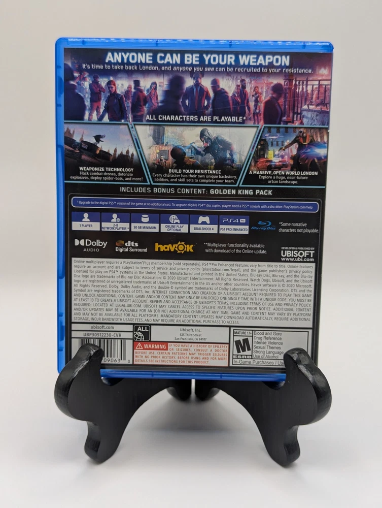 Game Name:Watch Dogs: LegionRating:M - MatureBrand:Ubisoftgtin13:0887256090630MPN:UBP30512230Platform:Sony PlayStation 4Features:Complete EditionUPC:0887256090630Publisher:UbisoftStyle:PHYSICAL_VIDEO_GAME_SOFTWARE