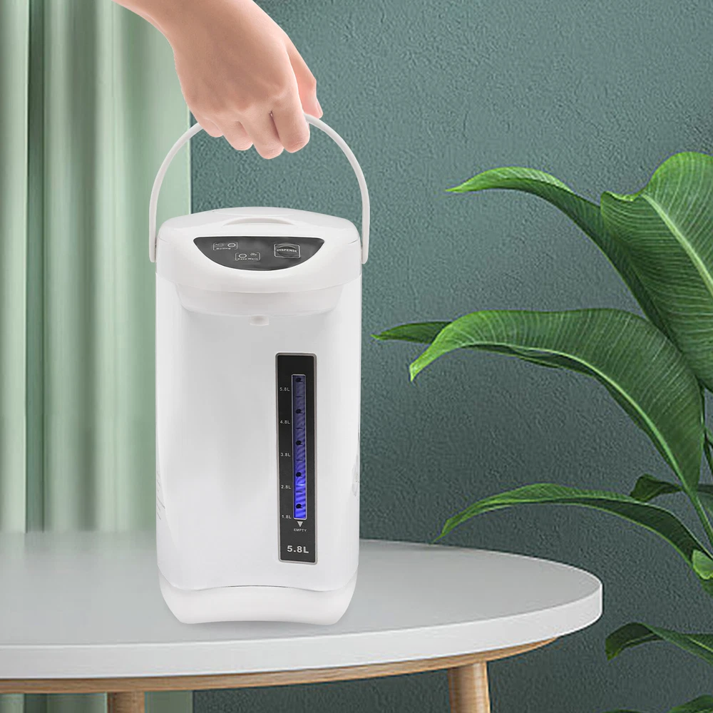 Description This electric kettle features fast heating, high safety and reliability, and multiple protection for your hot water needs. It has a large capacity and a stylish appearance, making it ideal for modern families. In addition, it is made of high-quality materials, sturdy and durable. If you need a practical and durable electric kettle, it is the right choice for you.Details Steam Holes: They help the product vent in time and let you know if the water is boiling. Work Indicator Light: The heating light and insulation light make it easy for you to see the working status of the kettle at a glance. 360 ° Rotating Chassis: It allows for convenient use in any direction or angle. Detachable Power Cable: The 3.94ft power cord reduces usage restrictions and further ensures safety. Visual Water Level Window: It enables you to monitor the water level at any time, effectively avoiding the situation of lack of water. Its glow-in-the-dark feature allows you to drink at night without having to turn on the light. Portable Carrying Handle: It allows you to easily reach and move the kettle.