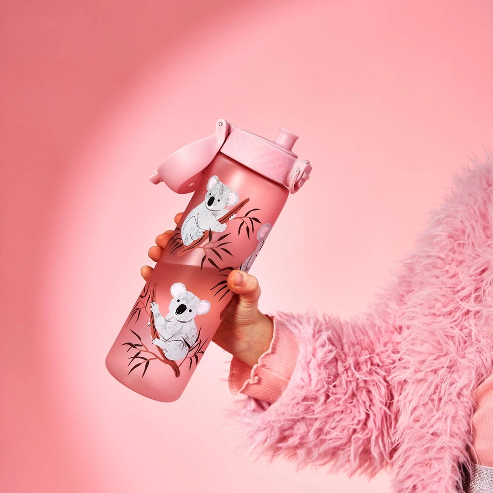 Introducing the Leak Proof Slim Water Bottle in a captivating Koala design. This 500ml (18oz) water bottle is a versatile companion for kids and adults, perfect for school, office, or travel. It boasts a 100% leak-proof design, ensuring no spills or mess. The water bottle features a hygienic spout cover that flips completely open with one finger for easy hydration. It locks securely for safety when in a bag, offering peace of mind. Designed with a hidden carry handle in the cover, this bottle is ready to go wherever you do. Its slim profile fits any cup holder or backpack. The water bottle ensures a vented, smooth liquid flow for rapid hydration. It's made from Recyclon, a phthalate-free, non-toxic, BPA-free, and carbon-neutral material, keeping your drinks fresh and full of flavor. Cleaning is easy with this top-rack dishwasher safe bottle. Safety guards around the seals make it even easier to clean. Suitable for both hot and cold drinks, this water bottle is a reliable choice for everyday hydration. With a soft, 'frosted' textured grip, the water bottle combines practicality with style. The Koala colour adds a fun touch to your everyday essentials. is a brand committed to delivering high-quality, functional, and stylish water bottles. This Leak Proof Slim Water Bottle continues their tradition of excellence, meeting your hydration needs while fitting seamlessly into your lifestyle. Stay hydrated with . 🐨 Experience the joy of spill-free hydration with our Slim Water Bottle. This 100% leak-proof, BPA-free water bottle is a must-have for your daily hydration needs. It keeps your liquids fresh and flavourful all day long and is the ideal companion for school, office work, or general purpose daily use. 🏃♂️Keep moving while you drink. The hygienic spout cover opens with just one finger and locks for safety. An off-centre spout design that requires minimal tilt and a lid that flips all the way back lets you see ahead whilst drinking, and stay safe. Enjoy peace of mind with every sip! Whether you're running, hiking, or just navigating a busy day, our slim water bottle is designed to fit seamlessly into your hikes, gym sessions, daily commutes and school or working lifestyle. 🎒 Perfectly portable, the slim design of this bottle fits any cup holder or backpack. It's the width of a can, making it your perfect travel buddy. Whether you're in a car, at a picnic, or just lounging at home, this durable water bottle has you covered. Plus, the integrated carry handle is hidden in the cover, making it ready to go whenever you are. 🧽 Dishwasher safe and easy to clean, this odour-resistant Recyclon plastic water bottle keeps your drinks fresh and full of flavour. The frosted soft-touch surface provides grip, making it a great choice for daily use. 🌱 This reusable water bottle is not just practical and safe, it's also environmentally friendly. Made from BPA free, non-toxic and carbon neutral Recyclon plastic, it's a sustainable choice that helps reduce plastic waste without compromising on style or functionality.