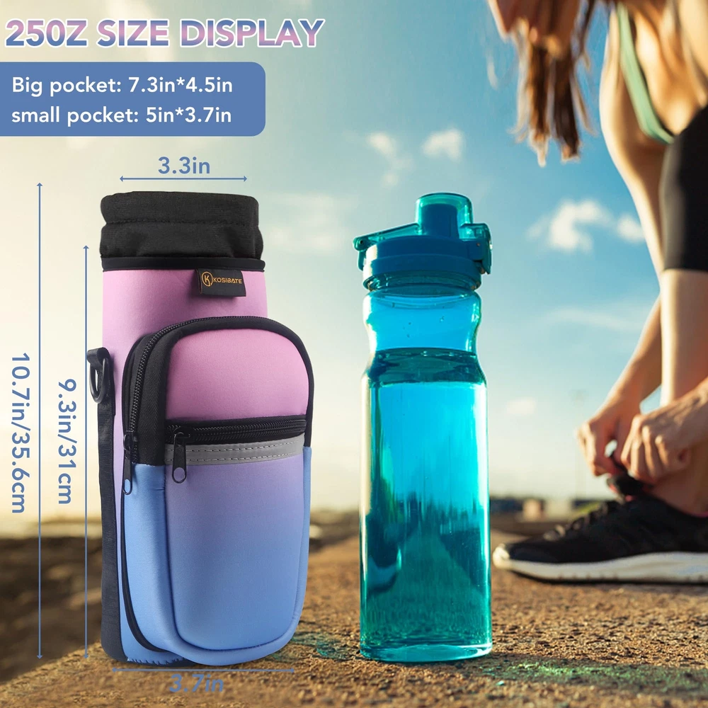 Premium Material: water bottle carrier bag is made of high quality neoprene material that protects your water bottle from scratches and scrapes, while keeping it highly soft and flexible, water resistant and durable Convenient to Carry: Our water bottle carrier bag comes with adjustable shoulder straps and a handle strap, making it easy for you to carry your water bottle with you wherever you go and making your travels more effortless Multi-Functional Design: This water bottle bag not only holds your water bottle but also has two additional pockets for storing your phone, wallet, keys, and other items, making your travels more convenient Suitable for All Occasions: Whether it's for outdoor sports, travel, hiking, or daily use, our water bottle carrier bag is an ideal choice Safety Assurance: We provide high-quality water bottle carrier bags, and if you encounter any issues during use, we will be dedicated to serving you and ensuring your shopping experience is worry-free