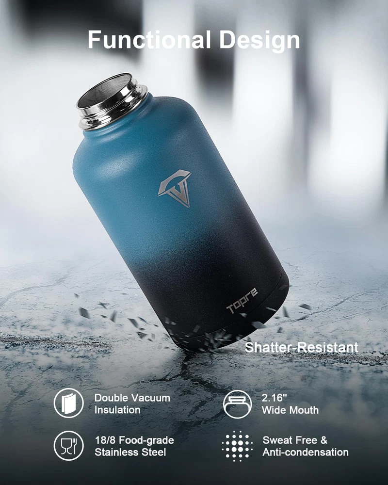 Store New Arrivals Add to Favorite View Feedback Contact Water Bottles 64 Oz, Insulated Water Bottle with Straw, Double Walled Vacuum Stainless Steel Water Bottle, Leak Proof Large Water Bottle with 3 Lids & Brush, Sport Water Bottle for Gym Camping Description Age Range Description Baby, Kid Capacity 4 Pounds Number of Items 1 Material Type Stainless Steel Is Oven Safe No Theme Sport With Lid Yes Item Dimensions W x H 4.88"W x 9.92"H Is the item dishwasher safe? No Cap Type Straw Cap Item Weight 2.7 Pounds Special Features Bpa-free Special Feature Bpa-free Color Indigo Black Recommended Uses For Product Water, Tea, Coffee Is the item microwaveable? No Included Components 64 oz Insulated Water Bottle, 1 x Handle Lid, 1 x Flip Straw Lid, 1 x Spout Lid, 2 x Replacement Straws Base Diameter 2.16 Inches Product Care Instructions Hand Wash Only Size 64 Ounces Premium Insulated Bottle: Made of 18/8 Food-grade Stainless Steel that’s non-toxic, BPA-free, and odorless, these vacuum insulated bottles keep beverages hot for up to 48 hours and cold 24 hours. Matte coating keeps the exterior nice and dry against sweat, moist, and slip. Functional Sports Bottle: These water bottle comes with 3 useful lids. Flip straw lid is for hands-free sipping when driving or working without blocking your view. Fast-flow spout lid allows spill-proof swig for instant refreshment after sports. Wide mouth handle lid makes ice cubes and fruits filling easily accessible. 3 lids, full flexibility! Wide Mouth Jug: 2.16 inches wide mouth allows fast fill-up and 64oz capacity holds enough fluid for a whole-day’s refreshment. Each lid is fitted with a seal ring to ensure 100% leak- and spill-proof, keeping beverages fresh and intact all day without transfer of flavor A Full Pack: You’ll get 1 x 64oz Sports Bottle, 3 x Lids, 1 x Portable Pouch, 2 x Detachable Straws, 1 x Straw Brush, 1 x Bottle Brush, 1 x Present Box. Different lids add possibilities to use anywhere at gyms, concerts, picnics, camps. Clean easy with the included brushes to get rid of coffee, tea, and milk. The present box package makes it a sweet present for families and friends Reassuring Customer Care: Buy 1 bottle get 8 accessories and 30 day service. If you are not 100% happy with our product, welcome to and we will respond within 24 hours. Tips for use: Hand wash only, do not put in microwave or freezer, keep away from babies and kids when dealing with hot beverages Product Description 1 Flip Straw Lid 2 Spout Lid 3 Handle Lid Adjustable Strap The adjustable strap allows for slinging over the shoulder and frees your hands, easy to take anywhere. Portable Handle The portable handle is high-quality and sturdy, pick and go. Straws and Straw Brush Straws enable sipping and straw brush easily removes stubborn stains from the inside of the straw to keep your sipping safe. Bottle Brush The bottle brush enables thorough cleaning on the inside and keeps the bottle always clean and fresh. Topre 128oz 1 Gallon Stainless Steel Water Bottle Topre's ambition is just like your attitude to sport, keeping moving towards the TOP and never stopping striving for EXCELLENCE! Topre Insulated water bottle Customer Reviews 4.6 out of 5 stars 254 4.7 out of 5 stars 21 4.6 out of 5 stars 254 4.7 out of 5 stars 138 4.6 out of 5 stars 254 4.6 out of 5 stars 254 Capacity 40oz 64oz 64oz 64oz 64oz 64oz Color Black White Blue-Pink Gradient Indigo Black Forest Green Black Portable Pouch ✔ ✔ ✔ ✔ ✔ ✔ Food Grade Stainless Steel ✔ ✔ ✔ ✔ ✔ ✔ Keep Cold for Up to 48 Hours ✔ ✔ ✔ ✔ ✔ ✔ Straw Lid ✔ ✔ ✔ ✔ ✔ ✔ Auto Spout Lid ✔ ✔ ✔ ✔ ✔ ✔ ABOUT US We offer the best prices around on high quality products. Our E-store includes media such as books, movies, music and games while offering electronics, toys, sporting apparel, clothing, tools, general home, garden items and more. SHIPPING We are always working hard to ensure your package arrives as soon as possible. Please understand that some factors like weather, high postal traffic, and the performance of shipping companies are outside of our control. We offer free shipping to the lower 48 states and ship within 2 business days of payment, usually sooner. We do not accept P.O. Boxes. Please provide a physical address. For shipping outside of the continental USA, we only use eBay's Global Shipping Program.The item is shipped to KY and then sent to the rest of the world. International customers are responsible for all duties and taxes. Continue to check out in order to calculate costs for shipping the item to your country. Messages regarding eBay's Global Shipping Program MUST be directed at eBay EXCLUSIVELY. RETURNS We offer a 30-Day Return Policy on items which you are not completely satisfied with. You have the option for a full-refund or an exchange of the item. No returns are available on items shipped outside of the USA. PAYMENT We accept PayPal. CONTACT US This page content is yet to come Please ad us to your favorite seller and visit again later Thank You CUSTOMER SATISFACTION We try our very best to make sure every customer is completely satisfied. If there's a problem, message us! We're happy to help. WE ACCEPT Copyright © 2021 AutoDS. | All Rights Reserved