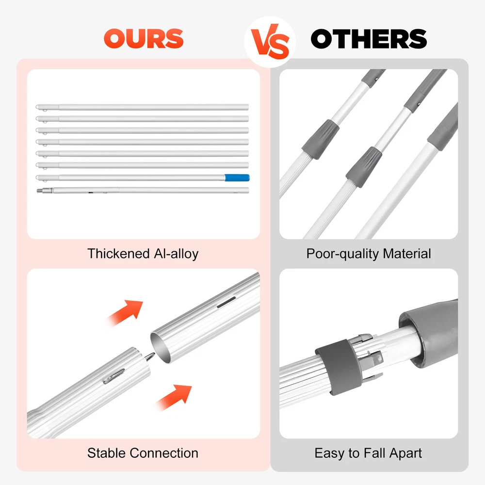 Water Fed Pole Kit Water Fed Brush 26FT For Window Solar Panel Cleaning Washing 26ft Window Cleaning washing Poles Water Fed Brush Water Pipe Tools Equipment Description If you are still worried about high-altitude cleaning, then our products are designed to solve your troubles. Multiple poles with a length of 1m/3.28ft can be connected freely without bending, and the maximum joint length is up to 8m/26ft, which can meet most cleaning needs at different heights. Moreover, our product has various user-friendly designs to assist your operation such as gimbal joint, steel buckle fixation, and standard tap joint. Specifications Color: Black Material: Al-alloy, PE, Rubber Total Length: 7.4m/24.3ft Surface Treatment: Electrophoresis Style: Tool, Safety Features: Extendable Mother Tube Diameter: 2.9cm/1.14inch Son Tube Diameter: 2.6cm/1.02inch Single Pole Length: 1m/3.28ft Max. Joint Height: 8m/26ft Water Pipe Length: 20m/65ft Brush Head Size(L*H): 35*8cm/13.8*3.1inch Package Size: 102*24*14cm/40.15*9.44*5.5inch Single Pole Net Weight: 0.25kg/0.55lbs Gross Weight: 4kg/8.8lbs Key Features High-quality Material: The window cleaning poles are made of high-density reinforced aluminum alloy, giving them high hardness, lightweight, and rust resistance. Universal Design: Our product applies a gimbal joint that supports multi-angle adjustment, making the brush head rotate freely so that you can easily clean up the dust and stains in every corner. Extendable Design: There are eight poles and each is 1m/3.28ft long, giving the cleaning brush a freely extendable feature. And the maximum joint length can be up to 8m/26ft, allowing users to easily clean windows or patios near the house or other higher positions. Professional Window Cleaner: This window cleaner comes with 8 lightweight 1m/3.28ft poles, a 2-hole water brush, a water segregator, a gimbal joint, a tap joint, and a 20m/65ft water pipe, providing you with a professional cleaner to complete the cleaning operation of various windows. Easy to Operate: After installation, you just need to connect this window cleaner to any standard household water source, turn on the tap, and begin your cleaning work, which is simple to use. Easy to Assemble&Disassemble: The poles adopt the steel buckle fixation, allowing for easy assembly and disassembly. And there is an English installation diagram for your reference. Easy to Carry&Store : The single pole weighs only 0.25kg/0.55 lbs. Also, it comes with a detachable design and a carrying bag, so you can carry and store this product easily. Customer Service: We have been working hard to provide better service and quality for our customers, which is our goal. If there is any problem with our products. Please contact us in time. Details 65ft Water Pipe: The 20m/65ft water pipe easily meets the flush cleaning needs at different heights . Furthermore, its anti-freezing feature ensures its long service life. Brush Head: It is equipped with a 2-outlet-hole lightweight brush head, and its durable and soft bristles ensure a safe clean of various surfaces. Tap Joint: The tap joint is made of high-quality brass, making it anti-corrosion and more durable. In addition, it has a user-friendly design for quick connection to other standard hose fittings. Anti-break Joint: The mother tube has an anti-break joint that can be used with various cleaning tools such as a blade, wiper, fiber duster, floor brush, mops, tiger clip, and water spray brush, completing the high level of cleaning operations. Application It is ideal for outdoor and indoor glass surfaces. It is suitable for high windows cleaning, solar photovoltaic panel cleaning, and cleaning cars, trucks, vans, caravans, windows, greenhouses, boats, decks, etc. Package Included 1* Water Brush 1* Water Segregator 1* Gimbal Joint 1* Tap Joint 1* Water Pipe 8* Poles 1* Carrying Bag 1* English Installation Diagram Notes Please read the English installation diagram carefully when installing. Please note that the blade, wiper, fiber duster, floor brush, mops, tiger clip, and water spray brush are not included in this package. Please allow the slight color difference caused by the shooting light and 1-3cm error due to manual measurement, and make sure you do not mind before you order. Payment Delivery details Terms of sales About us Contact us Payment We accept ebay payment 。 Fees such as import duties, taxes are not included in the item price or shipping costs. These charges are the buyer's responsibility. Delivery details Shipping: 2-9 working days to: USA Terms of sales We maintain high standards of excellence and strive for hundred percent customer satisfaction. Feedback is very important to us. We hope that you contact us immediately before you give neutral or negative feedback, so that we can address your concerns. It is impossible to address issues if we do not know about them! About us Your satis faction is our ultimate goal. We work hard to earn your trust and future business. Our certified technicians have tested each item before shipping. The unit comes with 1 year limited warranty on all manufacturing defects. a) If you receive a defective item, you may return it or ask for a discount. Please contact us within 14 days after you receive the package. b) What you returned must be intact and in its original packaging as re? u. Customer is responsible for shipping costs of the returned item. c) We will cover the cost of shipping back t with the shipping rate indicated in the registration page. We will send you a new unit or refund the full payment you paid. Thank you. Contact us Business Hour Business Hour: Monday To Friday: 8:30 AM to 5:00 PM (Beijing China time) Due to time zones, our reply to your questions may not be immediately. But within above working time, we will reply your email within 24 hours. If it's non-workdays, please kindly be patient and wait till Monday. Please contact us with ebay message. Please feel free to contact us if you have any questions. Monday To