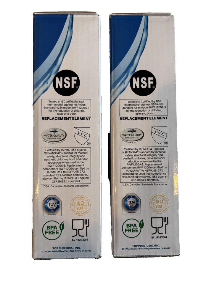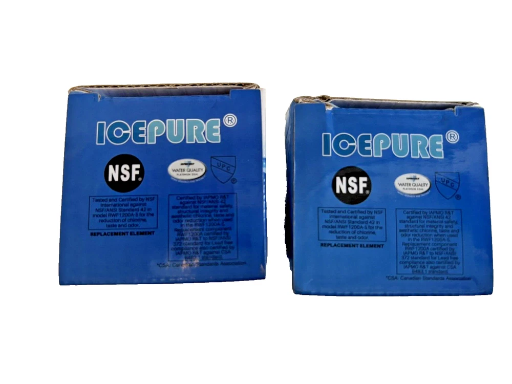 The Water Filter Replacement RWF1200A IcePure Lot Of 2 is a pack of two white water filters by the brand IcePure. These filters are compatible with LG and Kenmore brands, specifically designed for household use. The model number is RWF1200A and they are suitable for filtering water in various appliances. The product is not discontinued and does not include batteries. It ships from the USA and is a convenient option for maintaining clean water in your home.