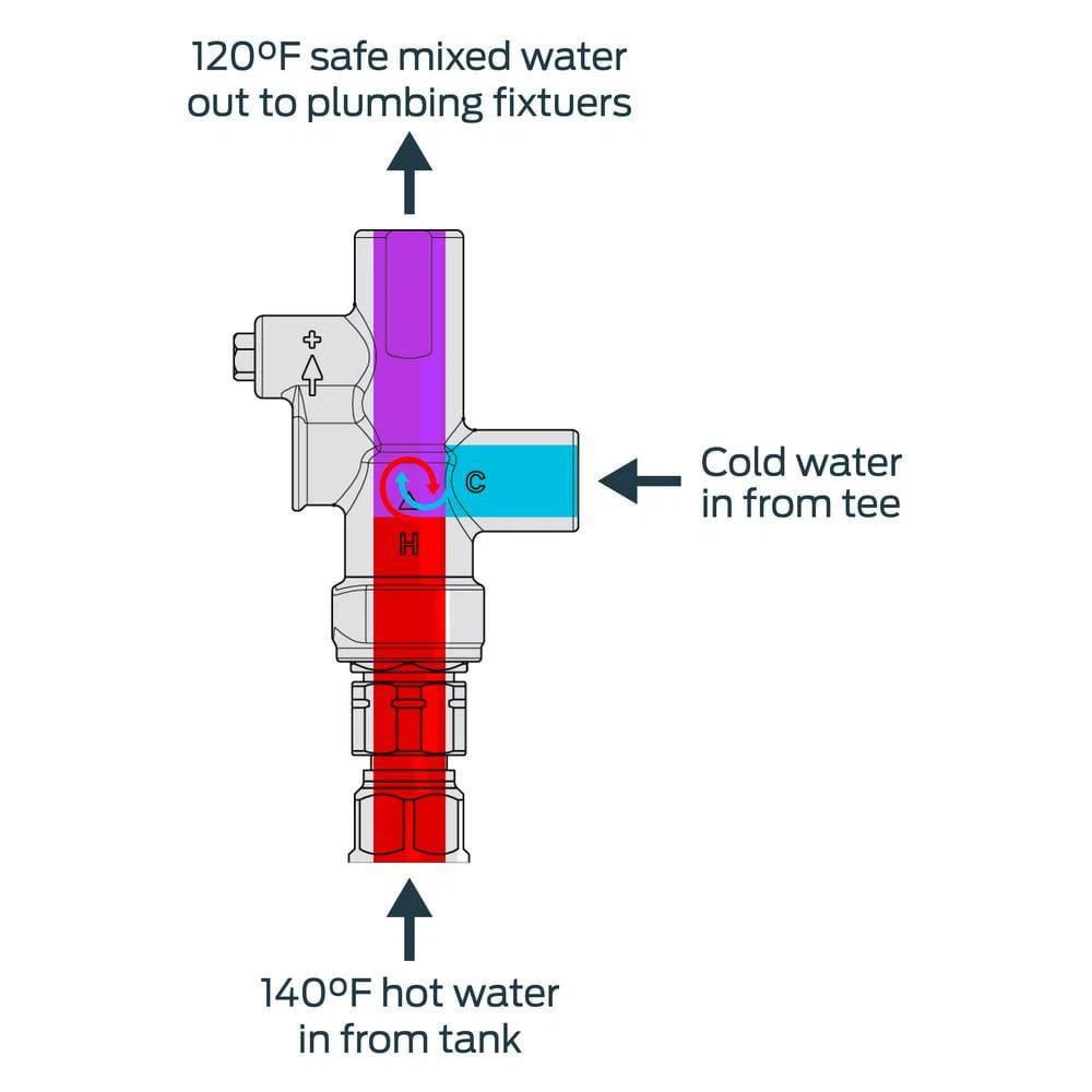 Water Heater Tank Booster with Knob for Temperature Adjustment Mixing Valve Unit