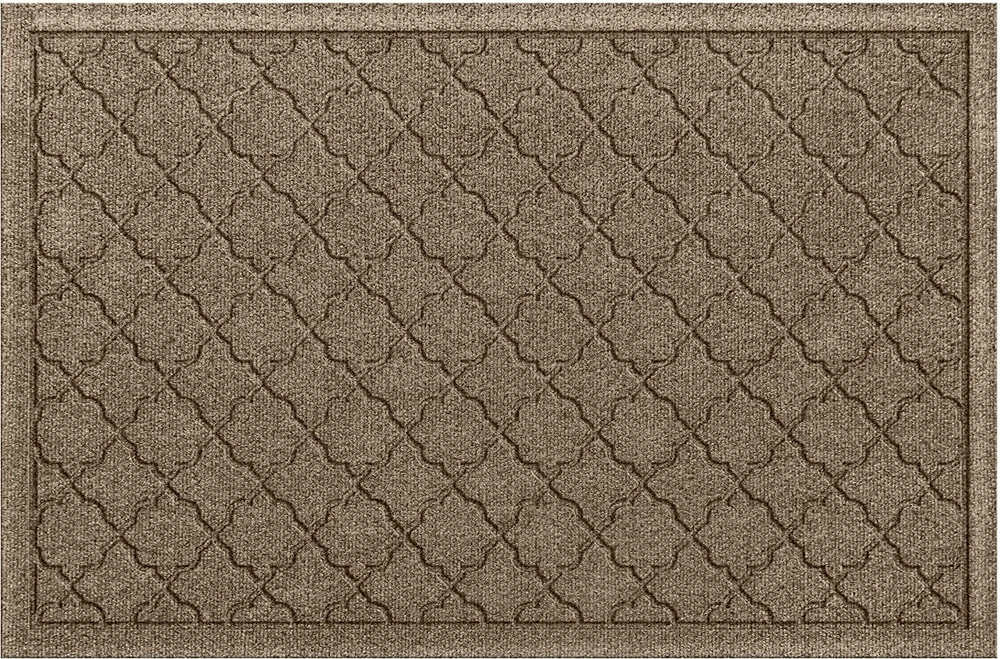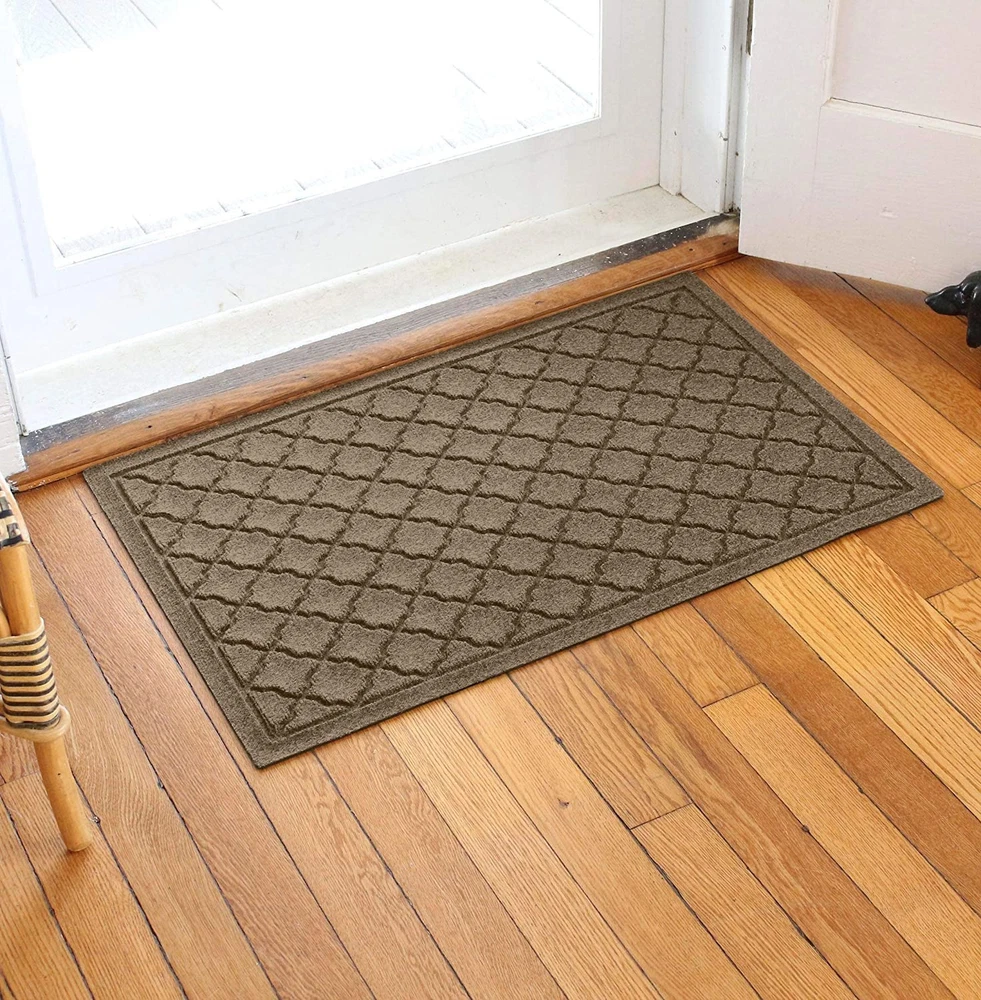 DURABLE, ECOLOGICAL CONSTRUCTION: Made in the USA, our WaterHog entrance mat is crafted with up to 94% recycled PET fiber and 20% recycled rubber backing, ensuring durability and long-lasting performance in high-traffic areas, both indoors and outdoors. EFFICIENT DIRT AND MOISTURE TRAPPING: This absorbent door mat features a ribbed abstract design and raised 'Water Dam' border, trapping up to 1 gallon of water per square yard. It effectively manages moisture and debris, suitable as an entrance mat or backyard doormat. SKID-RESISTANT, SAFETY-FOCUSED DESIGN: Certified by the National Floor Safety Institute, this heavy-duty entry rug features a skid-resistant backing to reduce accidents on hardwood, tile, concrete, and more, ensuring safety indoors and outdoors. EASY MAINTENANCE AND CLEANING: Designed for hassle-free upkeep, this entrance floor mat can be shaken, vacuumed, or hosed off to clear dirt. Simply let it air dry to keep it fresh, making it ideal for constant use in high-traffic spaces. VERSATILE SIZING FOR EVERY NEED: The 2' x 3' size with a low 3/8" pile height fits a wide range of doorways, making this WaterHog heavy-duty doormat an ideal choice for entryways, mudrooms, offices, or any high-traffic areas where moisture and dirt management are needed.