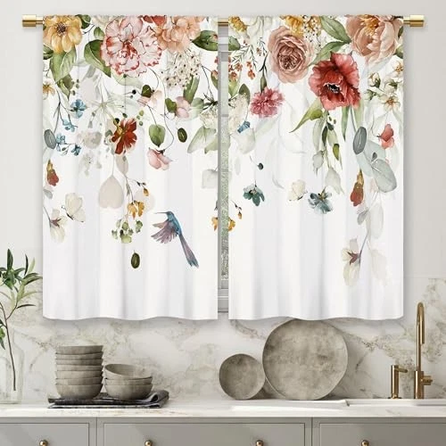 $ 7.4Spring Floral Wildflowers Curtains Valances for Kitchen WindowsSummer Flower ...