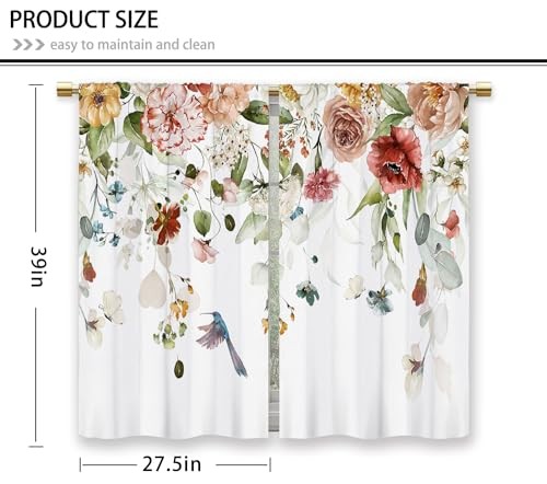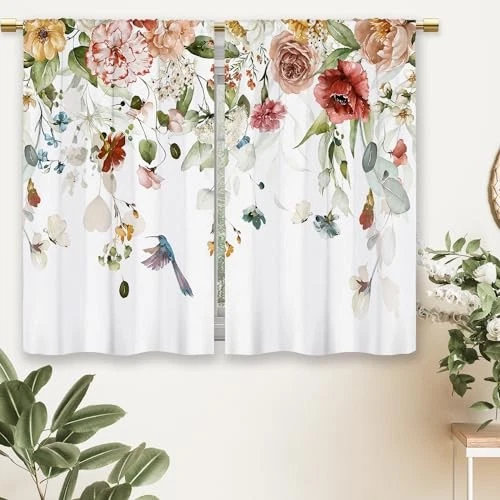 Return Policy Fast Delivery Trusted seller Watercolor Floral Kitchen Curtains Flower Plant Small Short Cafe Window Curtains Rustic Colorful Wildflower Plants Blossom Spring Rod Pocket Tier Window Treatment Drapes (27.5x39 Inch) Product Description 100% Polyester 【Farmhouse Design】 This floral cafe curtains a rustic design in a red & green color matched, add elegance to window treatments and overall appearance of the room. 【Ready Made】 Package includes 2 panels curtains, each panel measuring 27.5" width x 39" length. Each panel has 2.4 inch high pole pocket, which works well with tension rods or normal rods, easy to install and slide. It is recommended to use a rod with a diameter of 1.2 inch or less. 【Light Filtering】 The small curtains have just the right thickness to let in some light and also provide privacy. They will block a sun reflection, but not all of the light. You can cover the lower portion of your windows to provide privacy or used alone on shorter length windows, a great highlights to the kitchen. 【Easy Care】 Please machine wash separately with cold water, using mild detergent. Tumble dry low and no bleach. Simple iron is suggested before use. 【Nice Service】 Decorate your home, high quality. Nice after-sale service. Your 100% satisfaction is our first priority. Just contact customer support if you would like to return our products for any reason. Shipping Returns Payment Shipping Shipping is FREE to all addresses other than APO/PO boxes in the lower 48 states. All our stock ships from US-based warehouses. Shipped via USPS or UPS (depending on location and package weight) Unless stated otherwise, all orders will ship within 24-72 hours of your payment being processed. Check our feedback to see the great reviews of FAST shipping we offer. Returns Seller does not accept returns Payment We currently accept payment via eBay managed payments only. Once payment is cleared, we will dispatch your shipment within 1-3 business days. Please refer to the "Shipping" tab for more information regarding shipping speed to your destination.