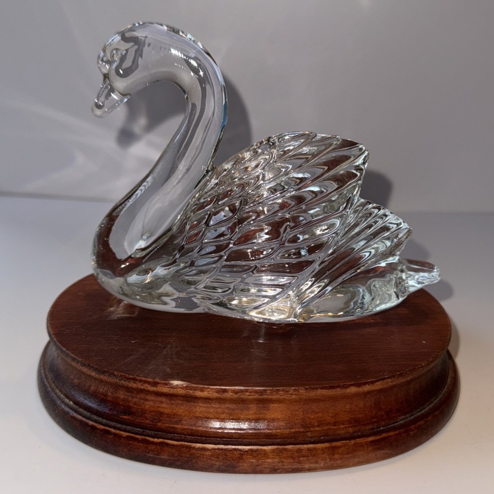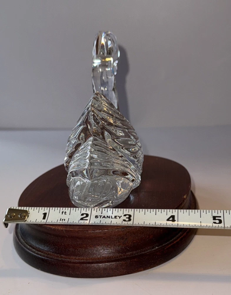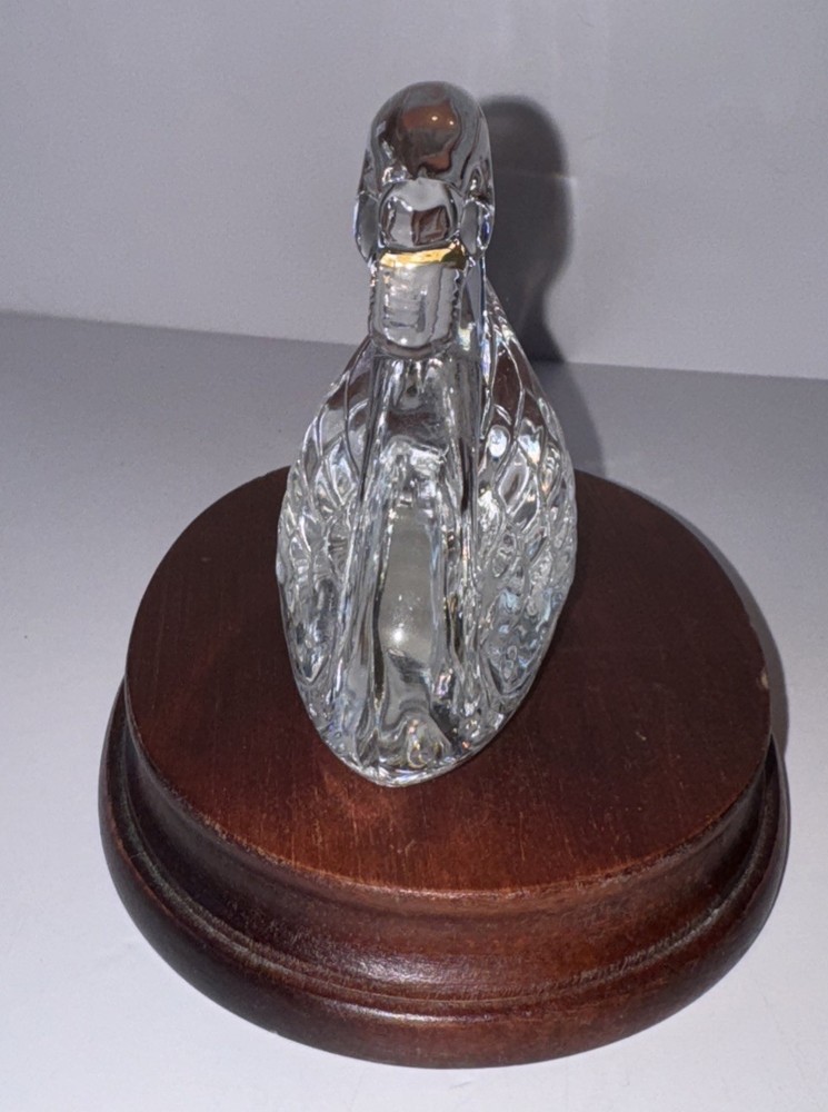 This exquisite Waterford crystal figurine depicts a swan and is part of the Legends & Lore series produced by The Waterford Society in 1996. The figurine is handmade using hand-blown glass production techniques and has a glossy finish. The swan figurine is 5.5 inches in length, 4 inches in height, and 2.25 inches in width, and weighs 2 lbs. The figurine is a vintage item from the late 20th century and is an original, licensed reproduction from Ireland. It features an abstract pattern with a clear color, and its production style is art glass. The item is in excellent condition and comes with its original packaging. This Waterford crystal swan figurine is a stunning decorative piece that will add a touch of elegance to any room.