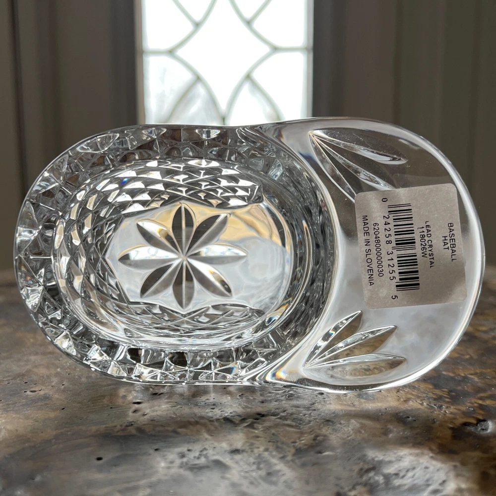 Waterford Crystal - Baseball Hat For your consideration, Waterford Baseball Hat portrayed in brilliant Waterford Crystal. New old stock, never displayed. "This crystal Baseball Cap is a celebration of an All-American sport and a salute America's love of baseball. Give it as a gift to the ballplayer in your life and share their excitement in the sport, or commemorate and cherish your most important baseball memories." 5" Long, 3" Wide, 3" High Acid etched Waterford mark present (red arrow) Will arrive in the original box Ships insured Have other Waterford listed Value Added Service We answer emails personally and understand you have concerns and questions that may be outside of the scope of the auction copy Feedback is left by us when we receive your payment. It's the very least we can do to thank you for putting your trust in us We know how to pack, using the proper materials to best protect your purchase Shipping Buyer is responsible for shipping costs, unless the listing is advertised as "Free Shipping". The shipping fee is either clearly stated or the eBay calculator determines shipping based on your zip code and the box particulars. Multiple purchases may have an unknown shipping rate due to fluctuations in weight but items will be combined to save money whenever possible. Insurance is always provided by us to cover loss or in the rare instance, damage If you intend on bidding on multiple items, please let us know so we don't start packing in advance In the case of damage in an insured shipment: Retain all packing materials and the box that was received. Please submit digital images of the damage as well as the shipping box and packing materials via Contact Seller in eBay. Returns If you receive something not as described due to a blatant mistake on our part, we'll pay everything; return shipping as well as a full refund of the purchase price and the original shipping Buyer's Remorse: We are flexible if a purchased item arrives and you simply change your mind. A 15% restocking fee will be charged and return shipping is at buyer's expense Please notify us within three days of item(s) receipt and for pre-authorization (use the contact button). The item(s) must be returned and received in the same condition as when originally shipped. Item(s) must be returned shipping prepaid, insured for the full value and safely wrapped and packaged to prevent shipping damage. Unless stated as new, these pieces have been around for many years, some as many as 100 years and are sold as described. They may have been displayed, used, washed, packed, etc The pictures and descriptions are as detailed as possible, and all reasonable care has been taken to describe as accurately as possible along with any damage or issues noted. However, vintage and antiques are previously owned If anything less than perfect, out of the box, isn't acceptable, these style pieces may not meet your standards.