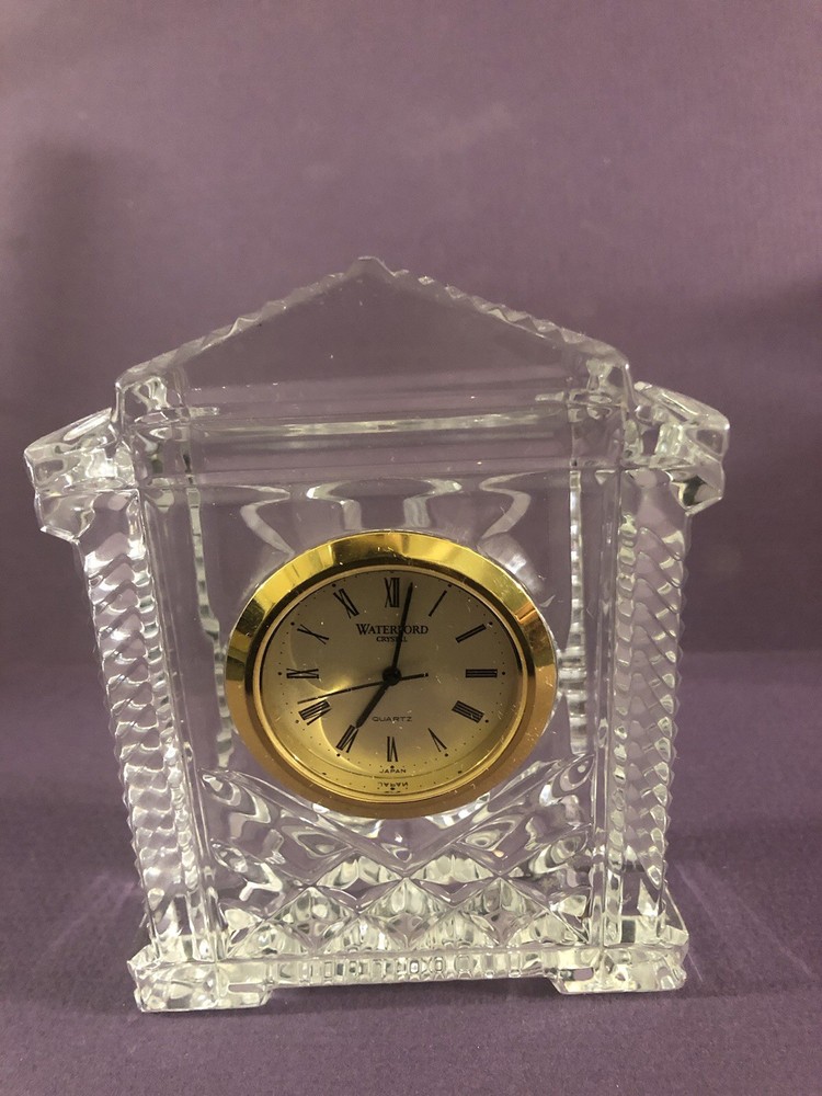 The Waterford Crystal Clock is a vintage desk clock featuring a quartz movement, making it a reliable timepiece. With a clear crystal material and a glossy finish, this clock adds a touch of elegance to any room. The clock boasts a classic design with Roman numerals and a battery-operated power source, perfect for collectors or those looking to enhance their workspace decor. Its timeless appeal and brand reputation make it a valuable addition to any collection.
