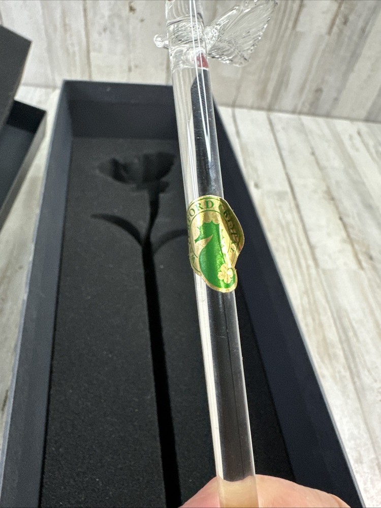 WATERFORD CRYSTAL FLEUROLOGY RED ROSE WITH STEM- 15" LONG