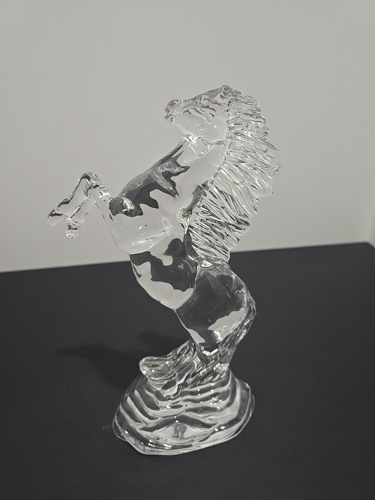 Experience the elegance of equine artistry with this Waterford Crystal Horse Figurine. Standing at an impressive 9.5 inches in height, this glass sculpture captures the graceful spirit of a horse in a stunningly realistic format. Crafted with meticulous attention to detail, it is an authentic piece that brings a touch of animal-themed sophistication to any collection or display. The figurine's origins trace back to China, where skilled artisans shaped and crafted each piece, ensuring that each sculpture met the high standards associated with the Waterford brand. Without its original packaging, this horse sculpture is ready to be admired and showcased by art enthusiasts and equine lovers alike.