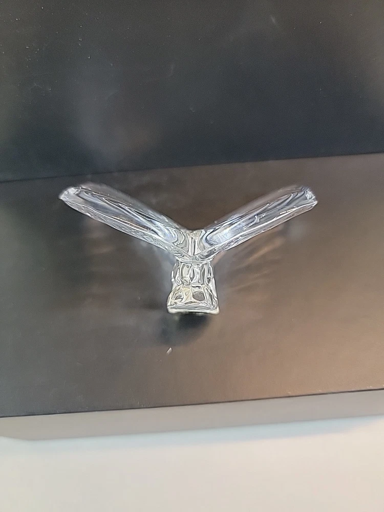 The Waterford Crystal Ireland Butterfly Figurine Paperweight is a stunning piece of art glass crafted by hand in Ireland in 1998. This intricate figurine features a butterfly design in clear crystal, measuring 2 1/2" in length, 2" in height, and 3 1/4" in width. With its Art Deco style and glossy finish, this vintage piece is a decorative and collectible item that showcases the exquisite craftsmanship of Waterford Crystal.