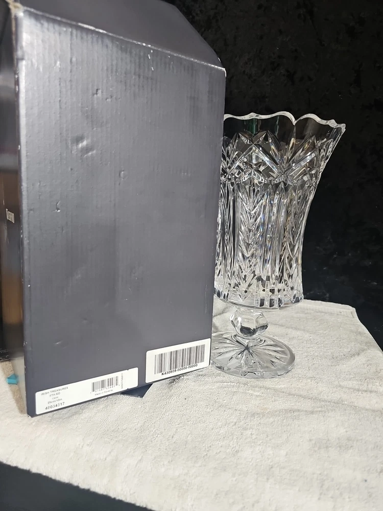WATERFORD CRYSTAL IRISH TREASURE 10 3/4" FOOTED VASE 5TH ED good condition I have assigned it as used because the bottom part looks as if it had been glued there. I found it and that's how I put it up for sale. Thanks for looking at the details in the photos.