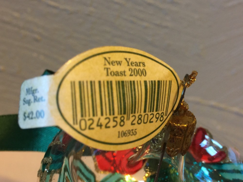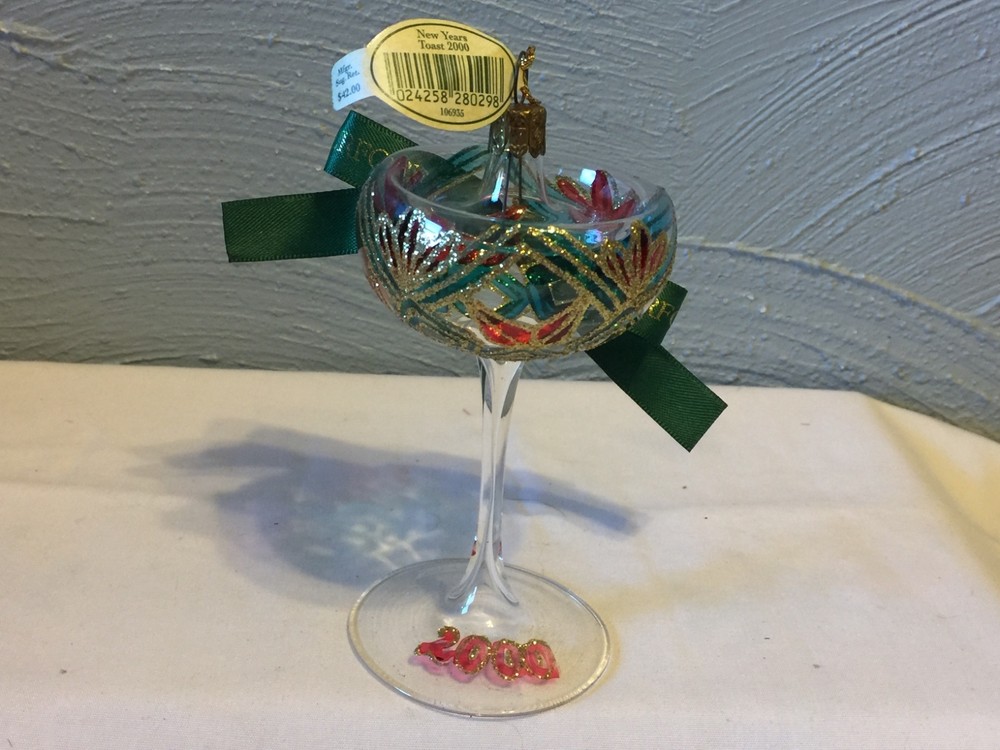 Waterford holiday heirlooms nostalgic collection a limited addition beautiful champagne glass. And titles New Year's toast 2000 this piece comes in its original box with its certificates of authenticity. This little for peace of Waterford Crystal is 5 inches tall and 2 1/4 inches in diameter at the base