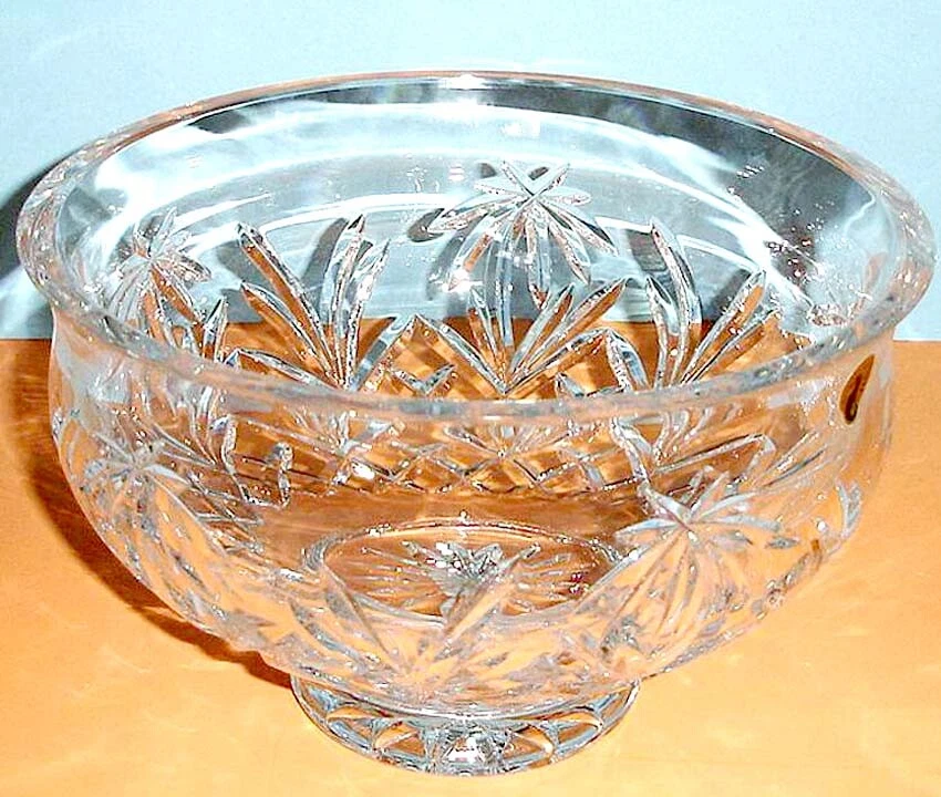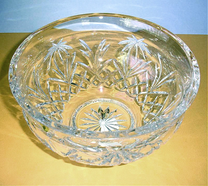 Waterford Crystal Palm Tree Large Round 10" Footed Bowl Handcrafted In Ireland! Brand new, first quality in original box #150043 Premium quality, brilliant full-lead clear cut crystal bowl featuring an exquisite palm tree design, cross hatch and vertical cuts, the bowl rests on a low footed base adorned with a decorative sixteen-point star cut. • T hick and weighty crystal bowl, generously sized at approx. 6" high x 10" across upper rim • Crafted of clear Waterford Irish lead crystal • Hand wash • Discontinued • This truly magnificent large crystal round bowl makes a prized acquisition or much appreciated gift ----------- Please closely examine the listing and submit any questions prior to purchase. Pictures may not reflect true colors due to various lighting conditions. Ships from a smoke-free, pet-free environment.