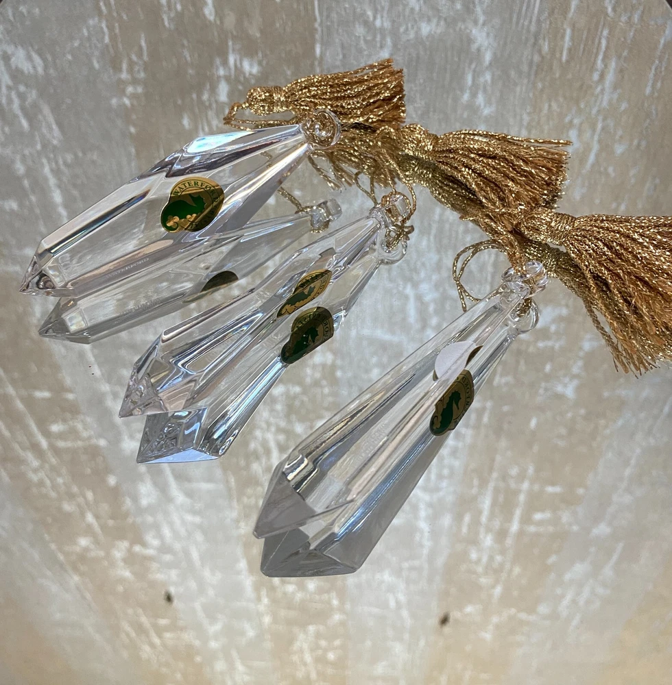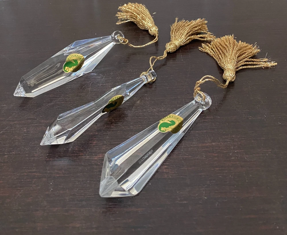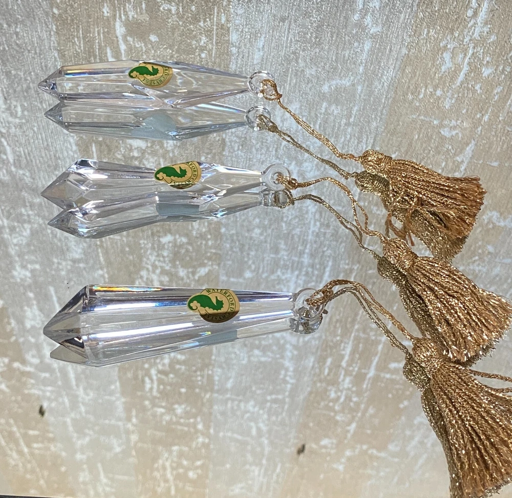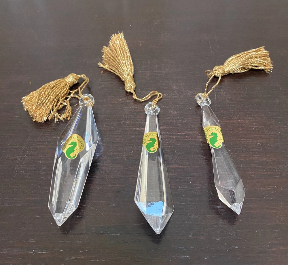 Waterford Crystal Prism Drop Ornaments Set of 3 Unique Ornaments NIB Each ornament is different - it is not a matching set Tasseled hangers are a beautiful bright gold Approx. 4" -4.25"