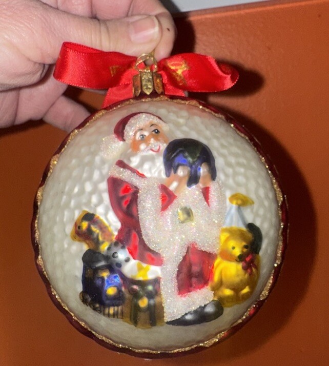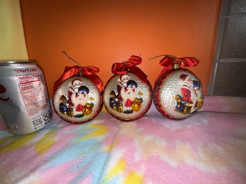 WATERFORD FTD Ornament with Santa and Globe 2 sided ornament I put a soda can next to it to help you judge its size It has a little wear but overall good condition as you can see I have 3 available and you will receive of shown Please See Pictures