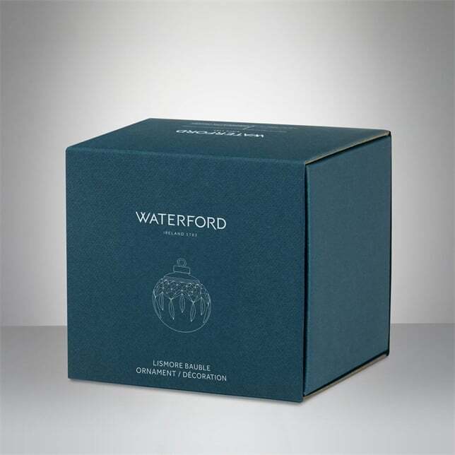 Lismore, the most iconic and distinguished of the Waterford patterns, is carefully cut into this crystal bauble ornament. Diamond and wedge cuts from our Lismore pattern will refract the light and sparkle of your Christmas lights twinkling this year and for years to come. Finished with a sleek and elegant green rope-tie, beautifully presented in a signature Waterford box and a keepsake cloth bag, this ornament makes for a simply stunning festive decoration. Whoever is lucky enough to receive this will likely treasure it for years to come. Expertly designed and crafted crystal bauble ornament with iconic Lismore pattern Ready to hang with green coloured cord Carefully wrapped in tissue and packaged in a cloth Waterford bag Beautifully presented in a signature Waterford box Undated ornament Product Article Number 1071524 Width 2.95 in Length 2.95 in Height 3.23 in Weight 0.432 lb