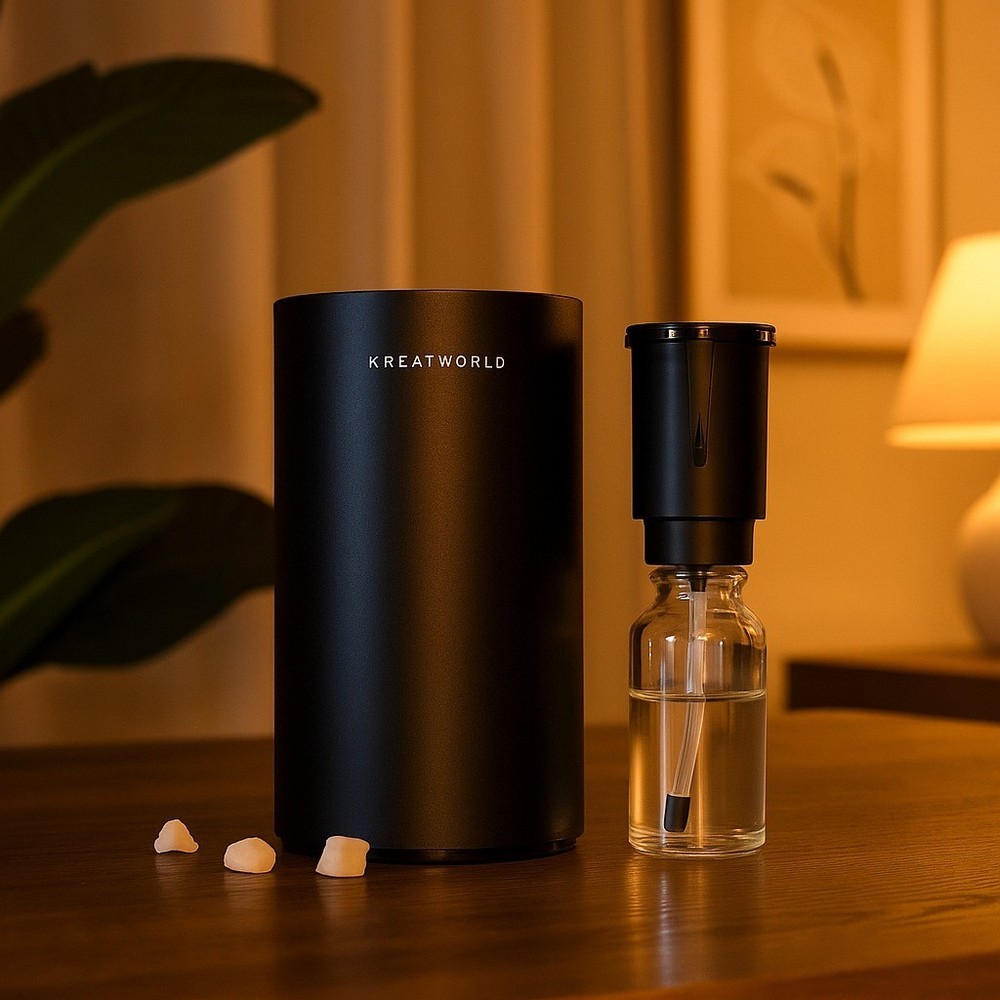 Elevate your space with the natural elegance of our Kreat Mini Diffuser. Designed to complement any home or office décor, this diffuser combines functionality with aesthetics, featuring a sleek wood-grain finish that adds warmth and style to your environment. Key Features: Aromatherapy: Gently disperses your favorite essential oils, creating a calming and soothing atmosphere. Ultrasonic Technology: Ensures whisper-quiet operation, making it perfect for use during sleep, work, or meditation. Adjustable Mist Modes: Offers continuous or intermittent mist options to suit your preference. LED Lighting: Includes soft, ambient light settings to enhance relaxation or set the mood. Auto Shut-Off: Built-in safety feature automatically turns off the diffuser when water levels are low.