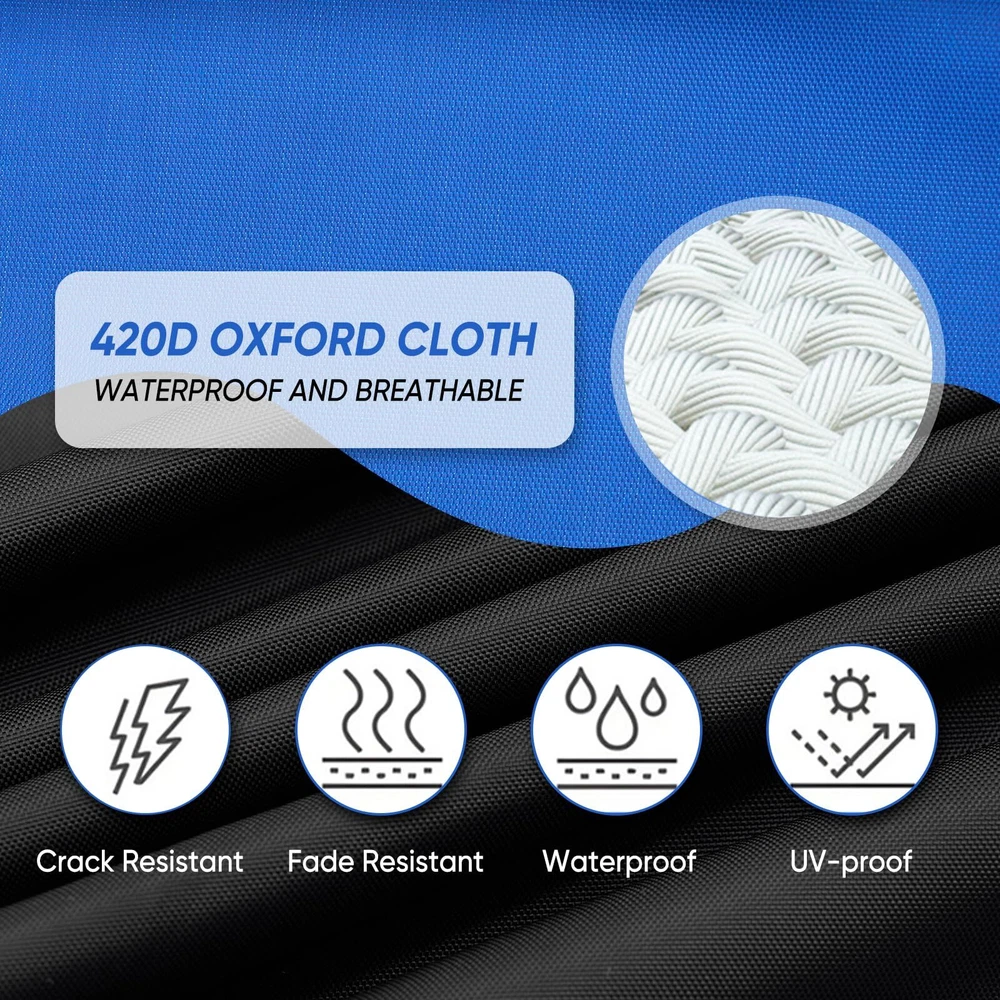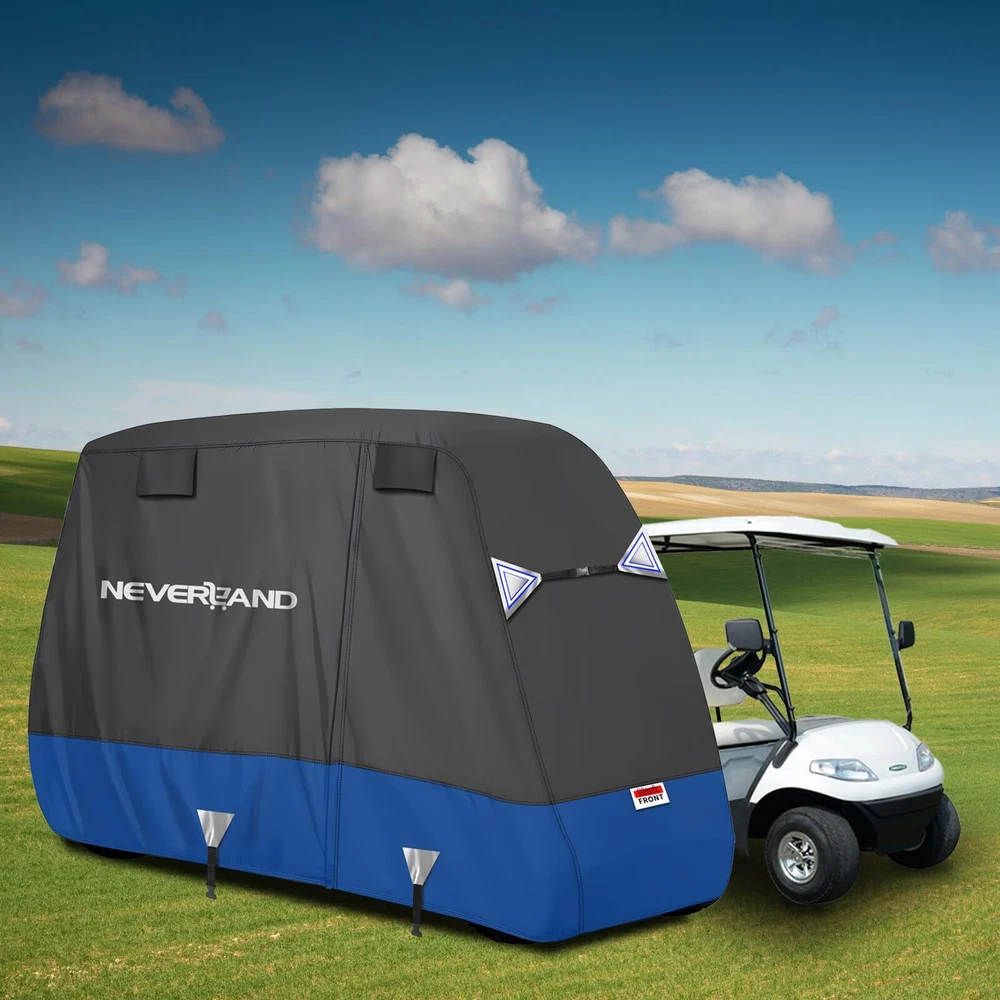 Golf Cart Cover - Waterproof, Sunproof & Windproof - Fits Yamaha, EZ GO & Club Car - Black+Blue, 2 Passenger GOLF COVER SIZE - 95" L *48" W *66" H, designed to fit most 4-passenger golf carts with extended roofs up to 80". Accommodates 2 rear seats, armrests, and footrests, compatible with brands like Yamaha, Club Car, and EZGO. (Tip: Please check the size and model before purchasing.) UNIQUE EXTERIOR DESIGN - ① Stylish color combinations make your golf cart cover stand out. ② Adjustable windproof buckles, a hem cord, and added horizontal straps at the front and rear ensure a snug fit and 360° wind protection. ③ Reflective strips on both the front, rear, and sides enhance visibility and safety during nighttime use ERGONOMIC DESIGN - ① The golf cart cover zipper on the sides facilitate taking the items out of golf cart without even removing the golf cart cover. ② There are vents on both sides to allow for air circulation, which prevents the inner side from being stuffy, and ensures dryness in the golf cart PREMIUM MATERIAL - Made from 600D Oxford fabric, this golf cart cover provides strong, long-lasting protection. It effectively shields your golf cart's finish from rain, heat, sun, snow, and scratches, ensuring durability and reliable performance 600D WATERPROOF - ① The golf cart cover features a special coating with a water pressure resistance of 3000PA. ② The waterproof zipper is equipped with a protective cover and secured with a velcro strap at the bottom for added protection, ensuring complete waterproof performance Golf Cart Cover - Waterproof Golf Cart Covers - Fits for Yamaha Golf Carts EZ GO Club Car - Outdoor Windproof Sunproof (Black+Blue, Fit for 2 Passenger Cart) Shipping We offer FREE shipping on all orders! We ship within Three business days of payment, usually sooner. We use a selection of shipping services such as UPS, FedEx, USPS etc. We only ship to the lower 48 states, no APO/FPO addresses or PO Boxes allowed. Local pickups and combined shipping options are not provided at this time. Return You can return a product for up to 30 days from the date you purchased it. Any product you return must be in the same condition you received it and in the original packaging. Please keep the receipt. Payment We accept payment by any of the following methods: PayPal Please pay as soon as possible after winning an auction, as that will allow us to post your item to you sooner! Feedback Customer satisfaction is very important to us. If you have any problem with your order, please contact us and we will do our best to make you satisfied. Contact Us If you have any queries, please contact us via ebay. We usually respond within 24 hours on weekdays. Please visit our eBay store to check out other items for sale! Thank you for shopping at our store.