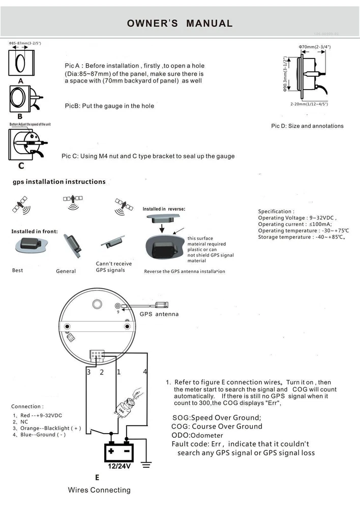 85mm GPS Speedometer 120 MPH for Car Truck Motorcycle Marine ATV High Quality Made With its signal coming directly from satellite signal receiver, Here comes the world’s most advanced GPS speedometer which shows the actual speed and total miles. It has the advantages of high precision, quick location confirmation and short start up time. Most importantly, the gauge is user-friendly to setup and can be used in all kinds of vehicles. Love your car, you deserve to own it. Product Information Application : motorcycle car truck marine boat yacht Operating voltage: 9V-32V,big range and fit for car and trucks Fixing dimension: 85mm (around 3.3inch) Scale Part: 0-4/4 Description: Magnet Movement gauge Indicating range: MPH 0-120 Bezel:SS316L Signal:GPS Operation mode: LCD display, Red backlight LED Displays odometer and it will keep on adding miles like cars Product Features Protection grade is IP67, the whole body is completely waterproof; Excellent antifogging function; 316 stainless steel bezel with curved glass; Convenient installation by multi-plug socket connecting way; Package: 1*GPS Digital Speedometer 1*GPS Receiver 1*Standard Cable 1*Manual Instruction