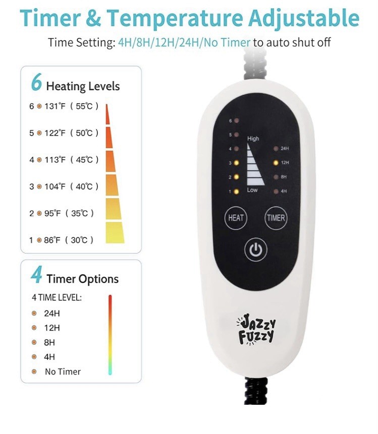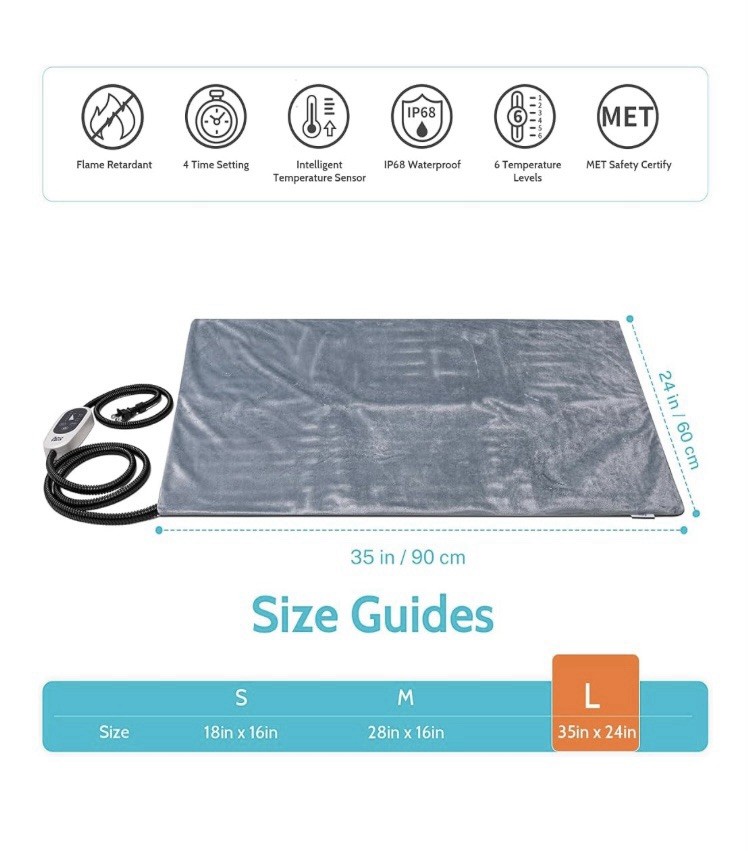 The Toozey Pet Heating Pad is an adjustable temperature timer designed to keep your large dog warm and cozy. Made with waterproof cloth material, it is portable and suitable for all dog breeds. The electric heating element ensures your furry friend stays comfortable, while the anti-bite cord adds an extra layer of security. Ideal for pet owners looking to provide a safe and comfortable heating solution for their canine companions.