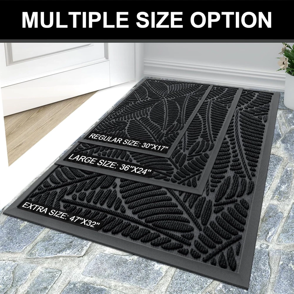 Store New Arrivals Add to Favorite View Feedback Contact Fast deliveries to the customer's home Quality customer service John Make the customers happy! Waterproof Doormat, Sturdy Natural Rubber Front Indoor Mat, Non Slip Low Profile Indoor Outdoor Door Mat, Stain and Fade Resistant Floor Mat, Easy Clean Patio Entrance Mat, 30''X17'', Black Description MOISTURE AND DIRT ABSORBENT: The topside of the Colorxy door mat is made of woven polyester fabric, featuring deep grooves that effectively capture dirt, dust, gravel, mud, sand, grass, or other messy debris, preventing them from entering indoors. The surface of the floor mat's beautifully woven polyester fabric absorbs moisture, and the Sturdy oblique rubber edge ensures that water does not accumulate on rainy and snowy days, helping to keep your home dry and clean. NON SLIP RUBBER BACKING: Colorxy's heavy-duty door mat is made of high-quality natural rubber, with a non-slip backing that helps prevent slipping when entering or leaving, ensuring your safety. The rubber backing prevents water and mud from penetrating the floor, keeping the doormat in place, preventing sliding, floor wear, and effectively protecting your indoor floor. With its 0.20-inch ultra-thin low-profile design, it can glide under most doors without jamming or curling. STURDY AND FADE-RESISTANT: Designed to withstand various weather conditions, including snow, rain, mud, and sand, the top surface is resistant to stains and fading, ensuring long-lasting use both inside and outside your home. EASY TO CLEAN: Colorxy front Door Mat can be cleaned with a vacuum cleaner, a broom, or by tapping the backing and shaking the mat. For a more thorough cleaning, use a garden hose to rinse the floor mat, then hang it in a well-ventilated place to air dry or use a dryer. MULTI-PURPOSE DOOR MAT: Colorxy welcome mats are not only stylish but also practical, making them ideal for indoor use to maintain cleanliness in homes, living spaces, lobbies, and offices. The mats are also suitable for outdoor use at front doors, sidewalks, patios, garages, barns, driveways, and other high-traffic areas. Crafted from heavy and Sturdy materials, these mats are soft and flexible. The simple and stylish design effortlessly complements any decor. Product Description Style Outdoor & Indoor Material Rubber Weave Type Machine Made Pattern Leaf Age Range (Description) Adult Country of Origin China Is Stain Resistant Yes Theme Welcome Number of Pieces 1 Is Autographed No Min Required Door Width 30 Inches Model Name Waterproof Doormat Rug Form Type Doormat Item Thickness 0.2 Inches Indoor/Outdoor Usage Both Water Resistance Level Waterproof Item Weight 2.26 pounds Pile Height Low Pile Construction Type Machine Made Special Feature Non Slip Color Black Shape Rectangular Back Material Type Rubber Product Dimensions 30"L x 17"W Size 30''x17'' ABOUT US We offer the best prices around on high quality products. Our E-store includes media such as books, movies, music and games while offering electronics, toys, sporting apparel, clothing, tools, general home, garden items and more. SHIPPING We are always working hard to ensure your package arrives as soon as possible. Please understand that some factors like weather, high postal traffic, and the performance of shipping companies are outside of our control. We offer free shipping to the lower 48 states and ship within 2 business days of payment, usually sooner. We do not accept P.O. Boxes. Please provide a physical address. For shipping outside of the continental USA, we only use eBay's Global Shipping Program. The item is shipped to KY and then sent to the rest of the world. International customers are responsible for all duties and taxes. Continue to 'check out' to calculate costs for shipping the item to your country. Messages regarding eBay's Global Shipping Program MUST be directed at eBay EXCLUSIVELY. RETURNS We offer a 30-Day Return Policy on items in which you are not completely satisfied with. You have the option of a full-refund or an exchange of the item. No returns are available on items shipped outside of the USA PAYMENT We accept PayPal. CONTACT US This page content is yet to come Please ad us to your favorite seller and visit again later Thank You CUSTOMER SATISFACTION We try our very best to make sure every customer is completely satisfied. If there's a problem, message us! We're happy to help. WE ACCEPT