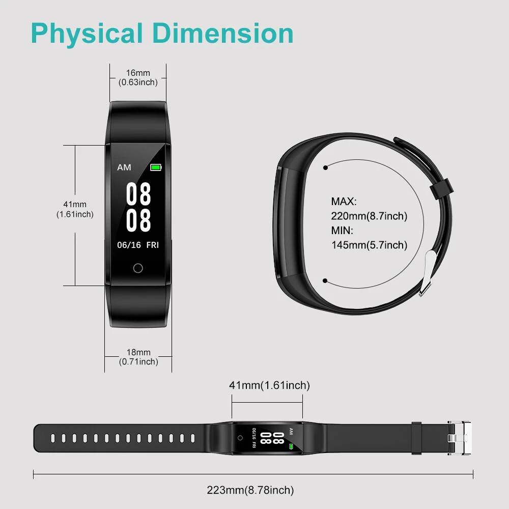 Step, Calorie & Distance Counter The fitness tracker can track your all-day steps, calories burned and distance. With it, you will become more active and walk more steps everyday. It will be an important everyday health reference. Sleep Tracker It is essential for us to keep a regular work and rest schedule. This tracker can record your sleep time. This function can help know better about your body and make reasonable adjustment on your sleep. A Good Gift Really friendly for the elderly and others who don't use a smart phone. This tracker can remind them to keep motivated and walk more. The weight is about 18g, which is very comfortable to wear this fitness tracker. This pedometer watch is a very good gift choice for the elderly and children, as it is simple and can work without a phone, also very light and comfortable to wear. IP67 Waterproof With IP67 water-resistance, this fitness tracker can be worn while swimming, washing your hand and will not damaged by the sweat. (Note: Not suitable for diving, taking a shower, or sauna.) Simple to Set up and Use Please set the date, time, gender, age and so on in the watch first. Tap the circle touch button once to cycle through the menu and change options in the settings. Press and hold the touch button (3 seconds) to go to next screen or save the settings. (Note: If you miss the correct number, you need to add the number to the max. Then begin again.) 5-7 Days Battery Life This fitness tracker can be used for up to 5-7 days and standby for 30 days after fully charged. It will help you get rid of the annoyance brought on by charging everyday. But it doesn't come with the charger. You need take out the watch from the wristband, then you will find the USB metal pin, just plug it into the USB port to charge. Customer service If you have any questions, please feel free to contact us we will give buyers positive feedback after shipping. If you are dissatisfied with a transaction for any reason. Before taking any action, please contact us through eBay first and we will do everything we can to help you!