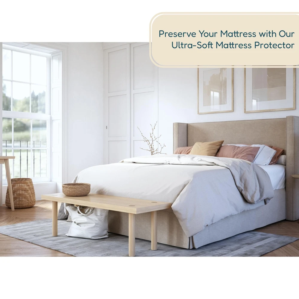 Experience the ultimate comfort and protection with our Full bamboo viscose mattress protector. Made from super soft bamboo viscose, it provides a luxurious feel while being waterproof to guard against spills, stains and allergens. The noiseless design ensures a quiet, restful sleep, while the breathable fabric keeps you cool by promoting air circulation. Easy to maintain, this protector is machine washable, making it simple to keep your bed fresh and clean. Certified to OEKO-TEX Standard 100, it guarantees safety from harmful substances. Upgrade your bedding with our bamboo viscose mattress protector for a perfect blend of comfort, protection, and peace of mind. ULTRA SOFT COMFORT: Enjoy the luxurious softness of bamboo viscose, providing a gentle and comfortable sleep surface for a restful night's sleep. 100% WATERPROOF PROTECTION: Protect your mattress with completely WATERPROOF Full MATTRESS PROTECTOR, designed to guard against spills, sweat, and accidents, keeping your mattress dry and stain-free. BREATHABLE AND COOLING: Stay cool and comfortable all night with our Full breathable mattress cover, which helps regulate temperature and promotes air circulation. ANTI-PILLING MATERIAL: Our Full bamboo viscose mattress pad ensures long-lasting durability and maintains a smooth, pill-free surface wash after wash. MACHINE WASHABLE CONVENIENCE: Our mattress topper is designed for hassle-free cleaning; simply machine wash and tumble dry to keep it fresh and hygienic, ensuring a clean sleep surface effortlessly. NOISELESS SLEEP EXPERIENCE: Sleep soundly without the disruption of crinkling noises, thanks to our noiseless mattress protector that maintains a quiet and peaceful sleep environment. FITTED SHEET STYLE: Deep-pocket design accommodates mattresses up to 18 inches deep, ensuring a snug and secure fit for your mattress.