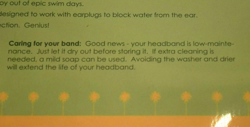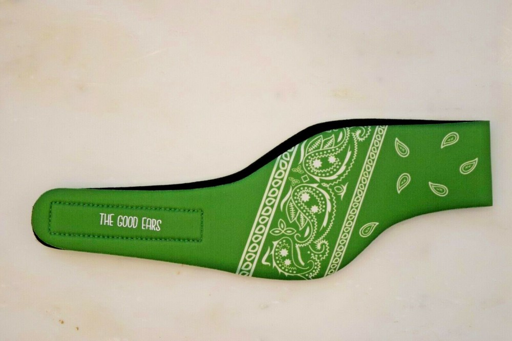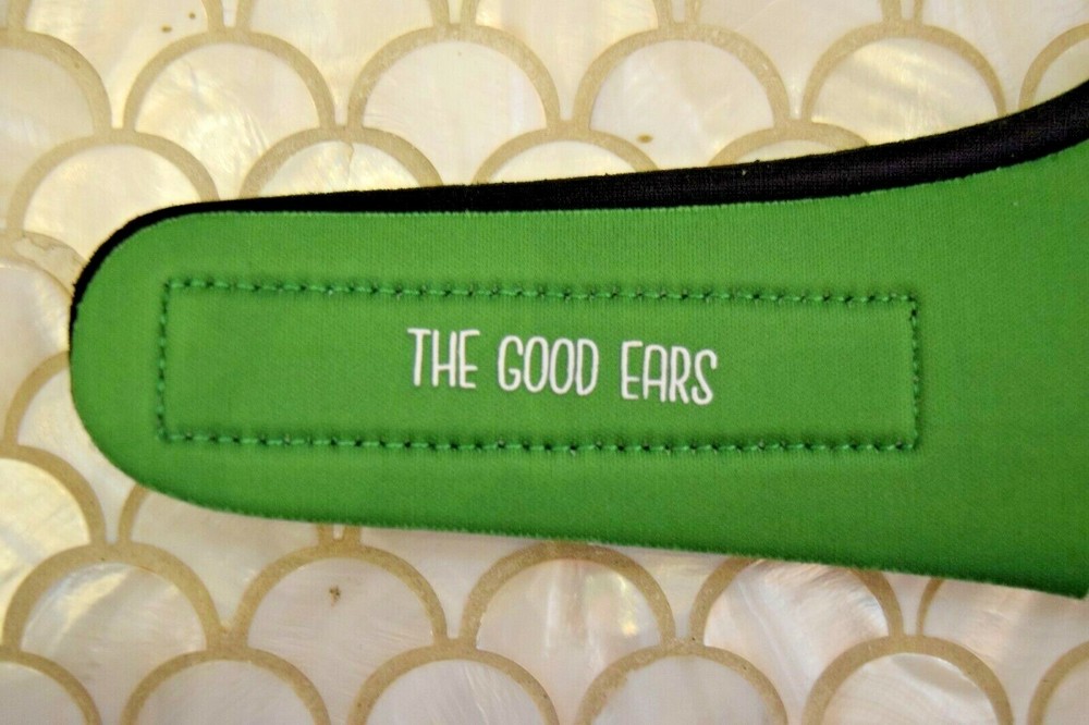 Brand New in Package - The Good Ears Swimming Headband Size Medium for Ages 1- 6 Years 22 1/2" across 3 1/2" long strips of Velcro sewn in for easy adjusting Color: Green ANOTHER LAYER OF PROTECTION: Ear infections can suck the joy out of epic swim days. The Good Ears Swimming Headband can help! Our headband is designed to work with earplugs to block water from the ear. No water = No Swimmer’s Ear. Genius! GOT EAR TUBES? Your ENT doctor might recommend keeping water out of the ears after having ear tubes placed. THE GOOD EARS Swimming Headband adds an extra layer of protection when swimming and helps keep earplugs in place. It can be used for showering and bathing as well. MADE OF NEOPRENE, BUILT TO LAST AND DESIGNED TO IMPRESS: Neoprene is commonly used in fly fishing waders and wet suits; it is a durable, low-maintenance material and provides some insulation against cold. And let’s be honest, our Paisley bandanna look blows all other swimming headbands out of the water! Please feel free to contact me with any questions! Returns on unused items cheerfully accepted. Smoke-free, pet-free home. Thanks! -Sonia