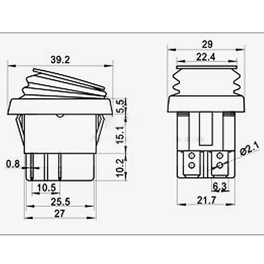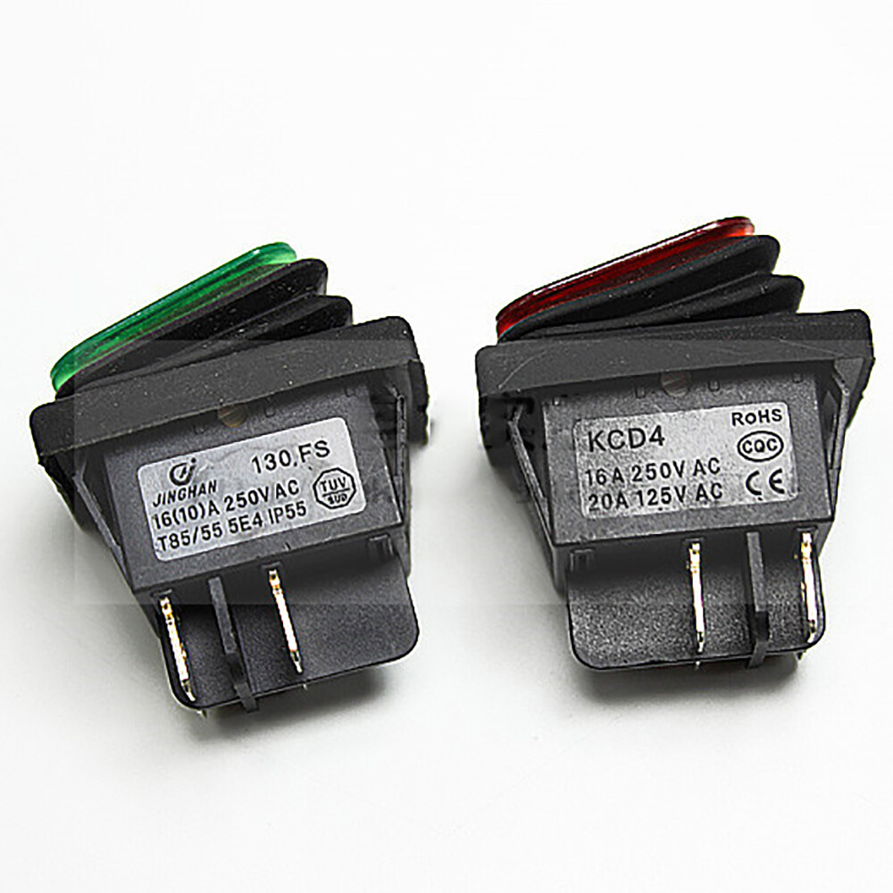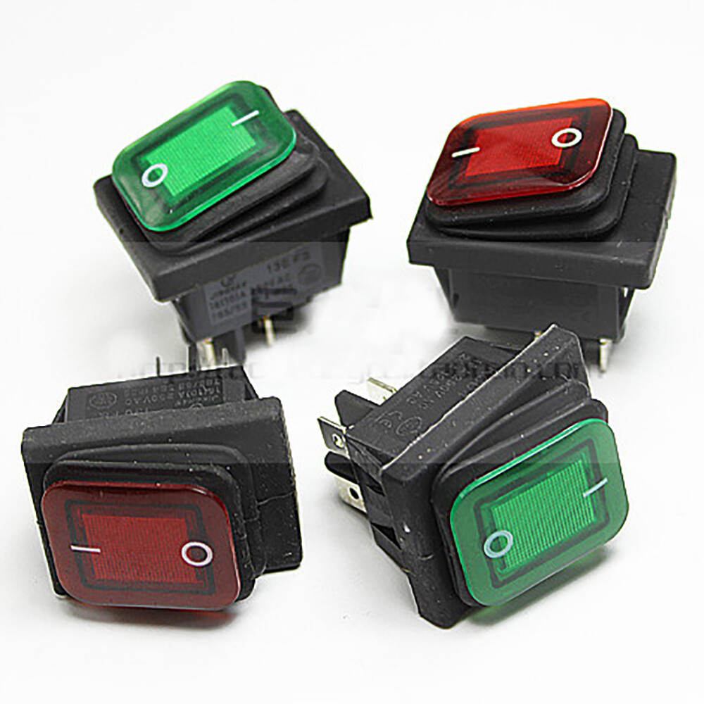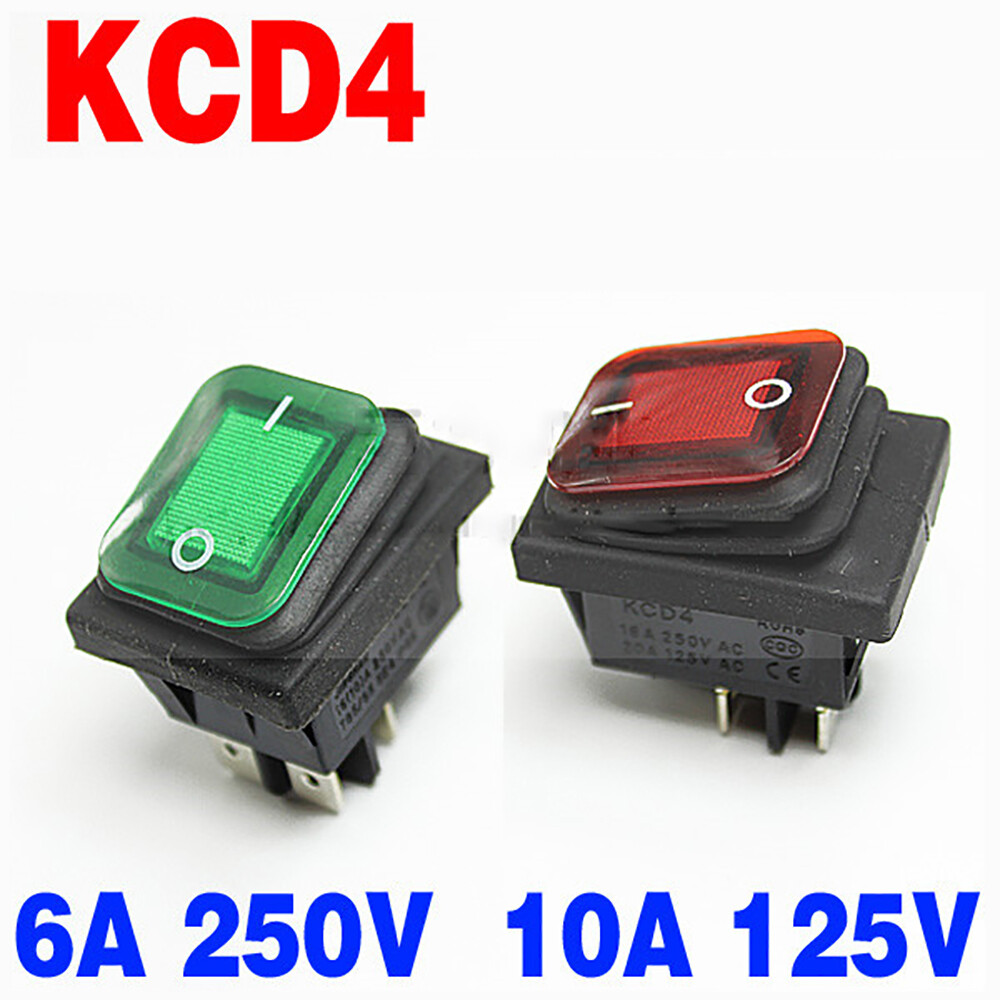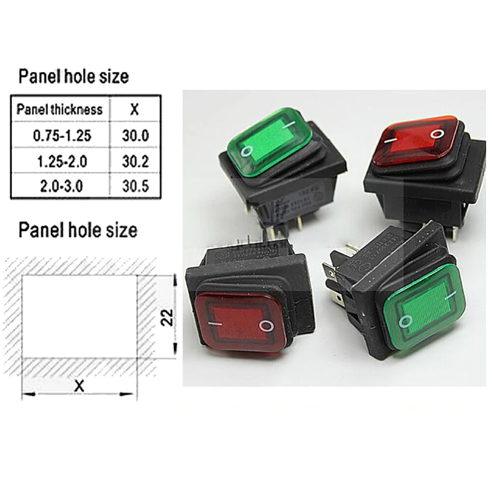 KCD4 Rocker Switch Waterproof Button Push On/Off Switch With Green Red light Rated voltage and current: 250V 6A or 125 10A Opening size: length 30mmx width 22mm Is there an indicator light inside: Yes Weight: 18g P a ckage Including: According to your choice.