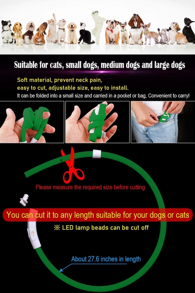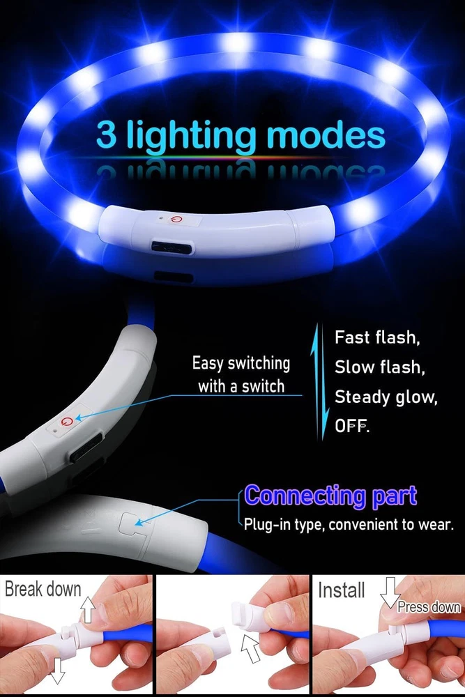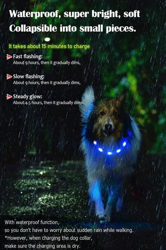 From the brand About ChunlongFour If you have any questions about our products, please tell us. We will do our best to let you have an happy shopping experience. Dog Collar and Dog Leash Product Description Features: waterproof, ultra-bright, soft, USB rechargeable, 3 flash modes, collapsible, adjustable, 360°visibility. *Due to lighting, monitor's brightness and contrast etc, the picture's color may be slightly different from the actual item's color.