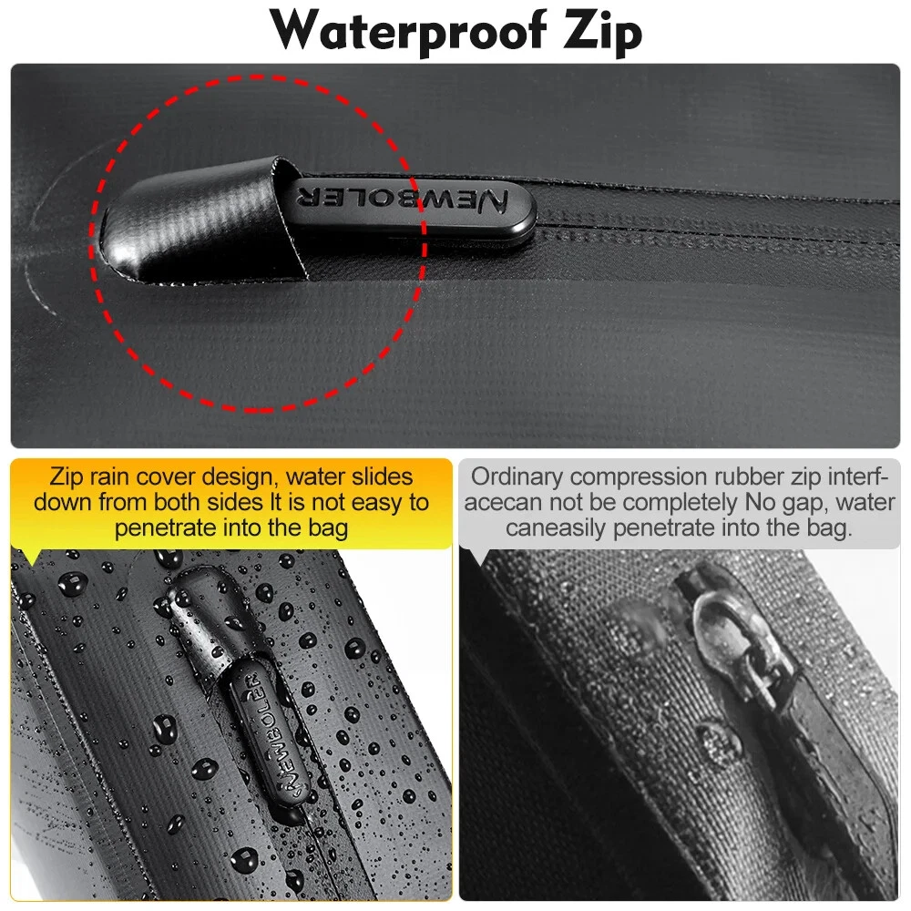 Product Details Condition: Brand new Size: approximately 23.5 * 6.5 * 10.5cm Color: Black Weight: approximately 90 grams Material: 840D nylon+TPU waterproof coating Product features Zip closure Large capacity: This bicycle frame bag is a large storage room, which can hold your mobile phone, wallet, keys, gloves, small tools, energy sticks, gel, nutrition or additional garbage. External elasticity is easy to install: it can be quickly disassembled and installed, and the long strap can be easily cut. The smooth zipper on the bag makes it easier to open and close with one hand while cycling, allowing for quick access to everything you need.
