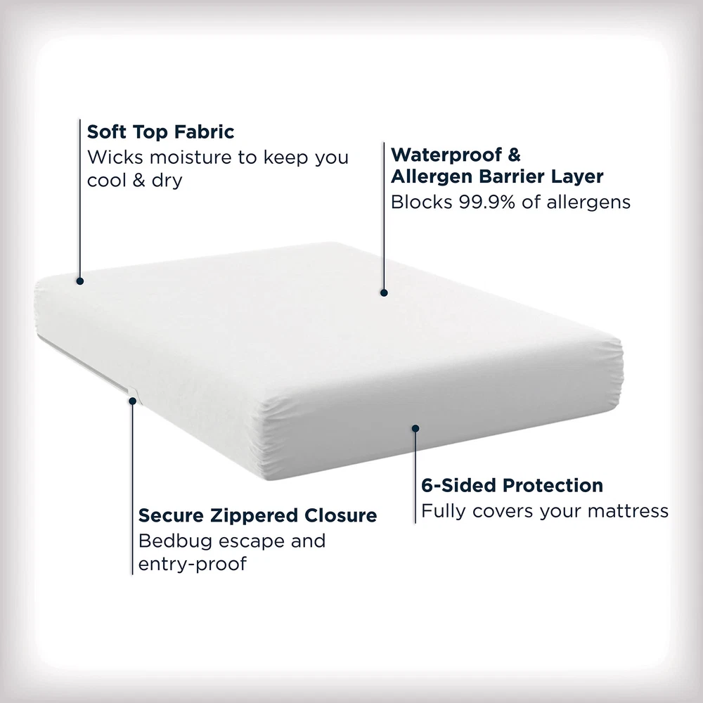 ALLERGEN BARRIER: Purely Clean Pro technology blocks 99.9% of unhealthy household allergens from passing through the fabric and collecting in your mattress. WATERPROOF: Soft, quiet top fabric is backed by a waterproof layer, protecting your mattress from unexpected spills & stains. FLEXFIT: Elastic corners ensure the perfect fit, tightly holding twin and full mattresses up to 14 inches deep, and Queen, King, and Cal King mattresses up to 17 inches. MACHINE WASH: Conveniently machine washable for easy care and a clean, healthy bedroom. LIFETIME WARRANTY: For peace of mind that you’ve made the clean, healthy choice for you and your family! EASY CARE INSTRUCTIONS: Machine wash warm, non-chlorine bleach when needed, tumble dry on delicate/low heat 60+-6 C or 140+-10 F. Max dryer exhaust temperatures vary by brand. It is recommended that the lowest dryer temperature be utilized and that the item be removed when it is dry rather than when the dryer stops running, do not iron. ZIPPERED: Specially designed seams and zippered closure prevents allergens from penetrating the mattress protector and collecting in your mattress.
