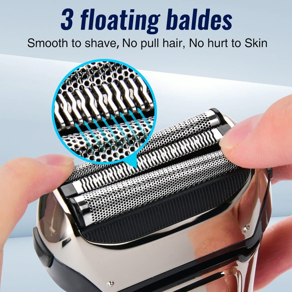 US-RSM-1577-Black 【Built-in Beard Trimmer】Electric razor for men shaving face with a beard shaver for mustache, sideburns trimming and long beards. 【Dry/Wet Shaving Easy to Clean】The electric razor for men that you can shave with foam, gel, You can conveniently rinse the shaver head under running water for easy and hygienic cleaning.This waterproof men's electric shaver is perfect for traveling on busines 【Shaved Closer with 3 Shaving Blades 】Foil electric razor for men floating system with 3 Shaving Blades, adapts to facial contours for a more closer shaving and make shaving easy. Smoother and more comfortable. 【USB Fast Charging, LED Display 】The electric razor for men face takes about 2 hours to fully charge, and the battery life is 90 minutes. The mens electric shaver supports plug and shave. This shavers for men has a USB fast charging system, The LED display screen, (1) Numeric indicator display battery remaining(2) The charging icon lights on while plug in. 【SATISFACTION 】If you don't love this shavers for men electric razor for any reason, Just contact us if you are not satisfied and we will offer satisfaction solution for you.