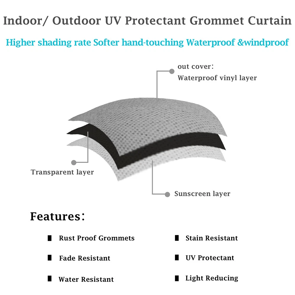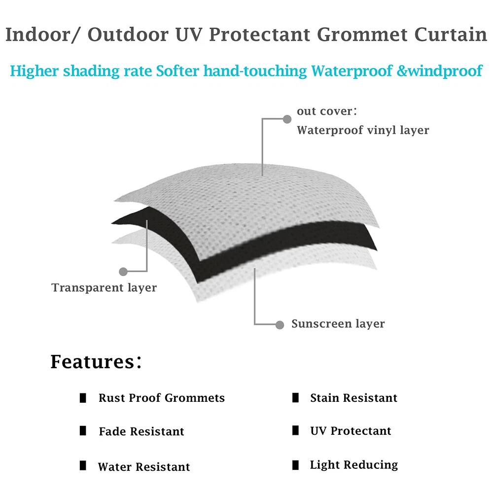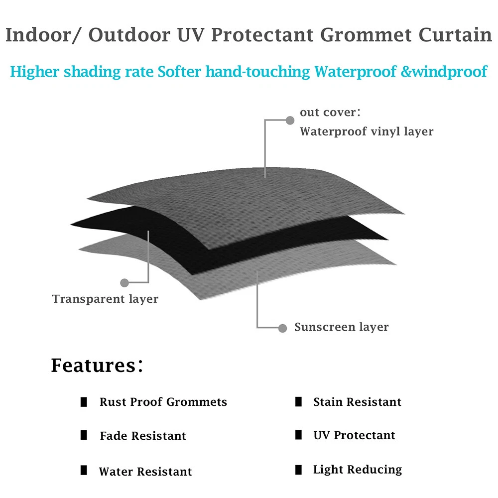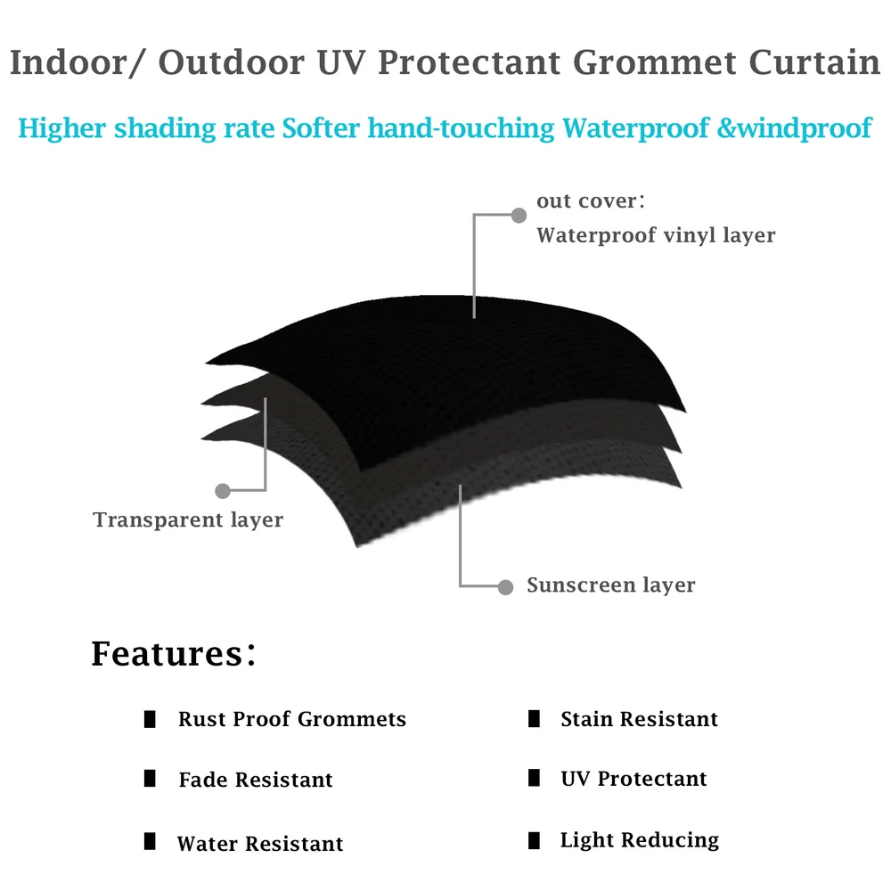 Waterproof Outdoor Curtains for Patio Porch Pergola Cabana Gazebo Sun Blocking