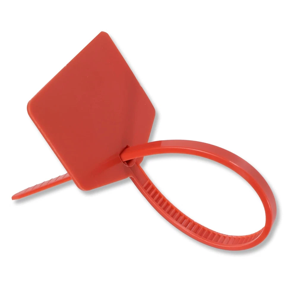 Total length: 120 mm card width: 16*26 mm Product material: PP Application: One-time blockage of identification. Unique double-lock design: our tag is provided with two locks.one is dispose lock which is for single use like logistic tag using, the other is re-use lock that you can reuse the lock such as warehouse sign, product sign, etc. You can also use it as a luggage label in your life. You can write a large number of signs and write them directly in an oily pen without losing color. Large signage is easy to identify. Wide range of applications: shipping, instrumentation, table boxes, postal services, customs, railways, transportation, oil transportation, shipping companies, logistics companies, supermarkets, gas meters, domestic air transport, international air transport, ore, foreign trade inspection, transport handling equipment, packaging barrel packaging, petrochemical containers, energy metering, prevention of theft, leakage, etc. Package included: 100 pcs red plastic tag seals. Package quantity: 100 pcs Red double-lock large shipping tags. Material: Made of plastic and steel, the thickened plastic material is waterproof and not easy to be damaged. the buckle hole is equipped with a sealing steel sheet, which is stronger than ordinary tags. Application: Large label tags can be hot stamping, silk screen, label paper or oily pen writing (will not fade). Especially suitable for logistics companies, with a sharp tail and easy to penetrate woven bags. Size: The total length of the plastic tag is 4.7" / 12 cm, the size of the card is 0.63" x 1.02" / 1.6cm x 2.6cm. Features: Double lock design, the hole with steel sheet cannot be reused after being inserted, the hole below can be reused.