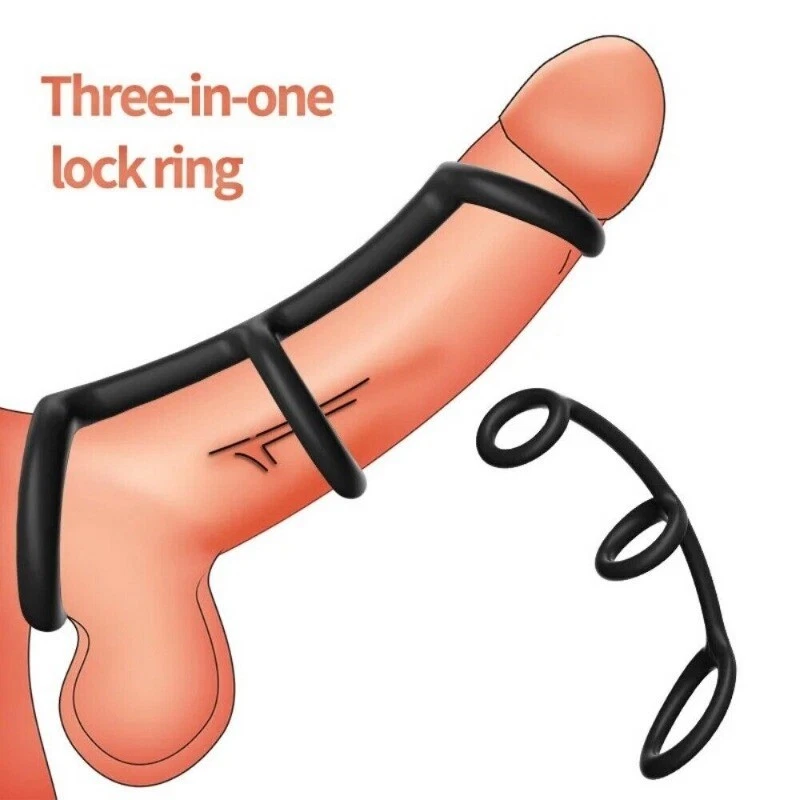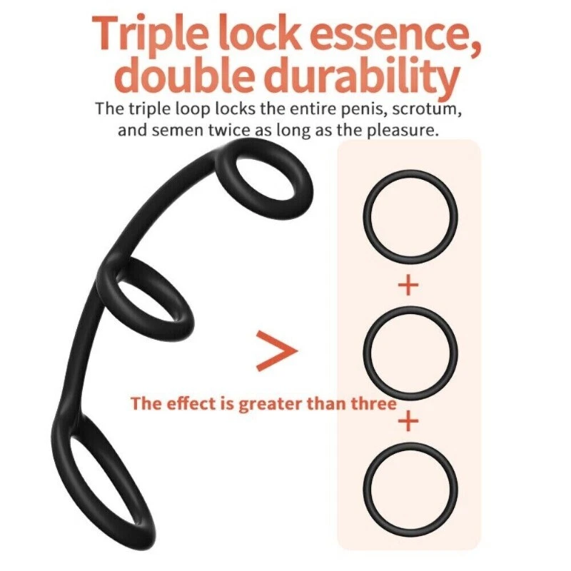 About the Product Ergonomic Design for Comfortable Wear: Enhance your experience with the triple Penis ring. Start by applying your favorite lubricant for added comfort. Then, follow the design to comfortably stretch the dual rings along the penile shaft. The larger ring wraps around the testicles to rest at the base of the penis, providing a snug and supportive fit. Clean the Penis ring with soapy water and pat dry after each use for optimal maintenance. Product Description Introducing the triple Penis ring, designed with triple ring support to extend your pleasure time. Engage in deep and prolonged intimacy with your partner! Simply slide this Penis ring slowly along your shaft, positioning it behind the balls for firm support and increased stamina. The elastic ring features top ridges that intensify pleasure with every thrust, ensuring a thrilling experience! Made from soft yet durable silicone material Innovative design targets the G-spot for heightened excitement Easy to wear at the base without affecting pleasure Bottom ring secures firmly for stability and minimal movement Cleaning is convenient with hot soapy water or specialized toy cleaning liquid; pat dry afterward. Use with your favorite water-based lubricant for enhanced effects Delivery Time Estimated delivery: 3-12 days (Note: eBay estimated time may vary)