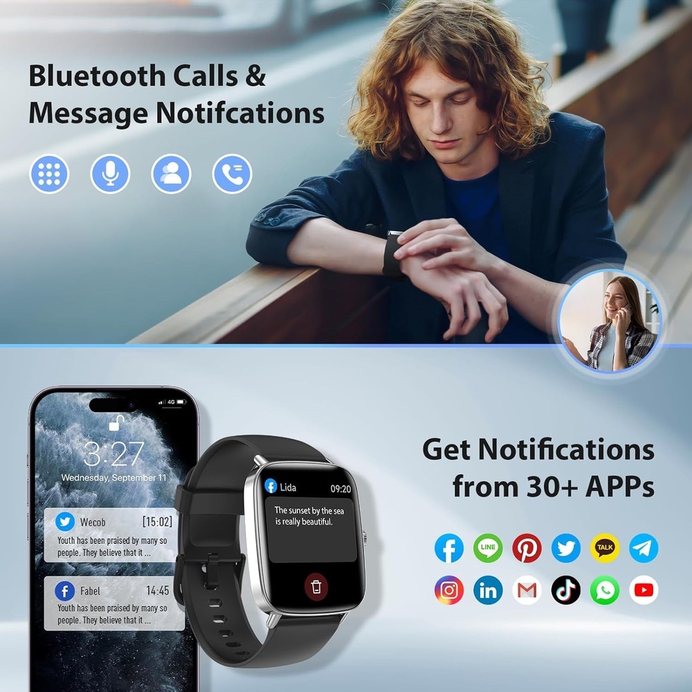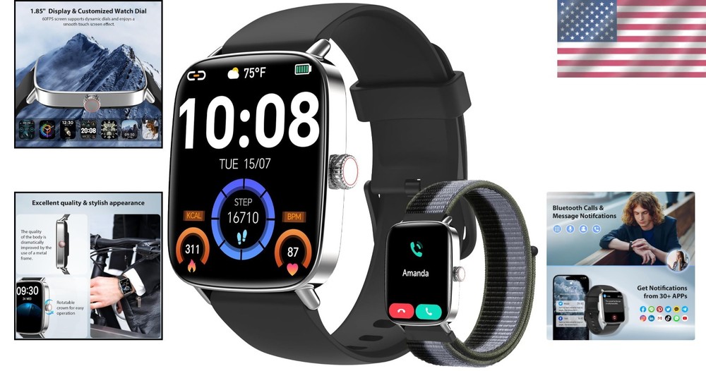 This smartwatch is a game-changer! The 1.85" screen is super responsive, and I love the 200+ customizable watch faces. It tracks my workouts accurately, handles calls smoothly, and looks stylish with its metal frame. Waterproof and packed with features—totally worth it!