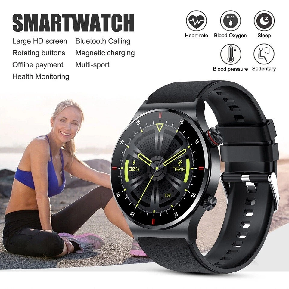 Product Description New Smart Watch Men Waterproof Smartwatch Bluetooth for iPhone Android Samsung A Features: ⏱ HD Touch Screen And Custom Dial: 1.3-inch HD color display with 240*240 resolution provides you with a high quality touch and visual experience. The brightness is adjustable, so you can easily read information in sunlight or in the dark. You can download the dial or customize the dial and set different styles according to different life scenarios to show your unique personality. ⏱ Smart Bluetooth Call And SMS Alerts: All messages and notifications are displayed on the watch and alert you via vibration, you can choose to answer or reject calls on the watch, you can also receive messages from Facebook, Twitter, Whatsapp, SMS, notification software (such as INS), so you won't miss important work phone messages. ⏱ Healthy Sleep And Heart Rate Monitoring: This stylish smartwatch monitors heart rate, blood pressure, blood oxygen, deep and light sleep status, analyzes sleep and helps you better understand your health. Rationalize your lifestyle. Warm tips: (This watch is not a medical device, measuring health data for reference only). ⏱ Multi-Functional Smart Notification: Sedentary reminder, alarm setting, remote control photo, weather display, stopwatch, music control, cell phone search, hand illuminated screen, female physiological cycle, step calculation, distance, calorie, heart rate/blood pressure/blood pressure/sleep monitoring, brightness adjustment and other functions. Support uploading picture customization, binding payment account can realize payment function, support offline sweeping code payment. ⏱ Multiple Sports Modes & IP67 Waterproof: 10 sports modes can help you better understand specific activity data. Sports modes include running, soccer, badminton, basketball, jump rope, swimming, climbing, cycling, running, walking, table tennis, etc. Easy to operate and switch, and immediately displayed on the screen to record. Adopt IP67 waterproof setting standard to avoid daily hand washing, sweat, rain and other splashes (Note: not for bathing, diving, etc.). ⏱ Support Devices And Long Battery Life: Our smartwatch is compatible with iOS 10.0 and above, Android 5.0 and above smartphones. Equipped with 260mAh large capacity battery, magnetic charging time is about 2 hours, and it can standby for about 15 days after fully charged for 5-7 days. ⏱ Support Languages : Simplified Chinese, English, Italian, Japanese, German, Spanish, French, Russian, Portuguese, Polish, Turkish, Greek, Hebrew, Czech, Hungarian, Arabic. ⏱APP Name: Fractional Dynamic Circle. Support languages: Russian, Bulgarian, Hungarian, Turkish, Hebrew, German, Italian, Czech, Slovak, Japanese, French, Polish, Thai, Simplified Chinese, Traditional Chinese, Finnish, English, Portuguese, Spanish, Arabic. Specifications: ⏱ Name: QW33 Men's Smart Watch. ⏱ Color: Black;Silver Gray ⏱ Strap: Standard 22MM ⏱ Material: Silicone Band ⏱ Touch Screen Mode: Full Touch. ⏱ Battery: Built-In 200MAH lithium-Ion Battery. ⏱ Waterproof Function: IP67. ⏱ Compatible System: Android 5.0/iOS10.0. ⏱ Charging Type: Magnetic Charging. ⏱ Display: 1.3 IPS, 240*240 Full Round Display. ⏱ Operating Time: 5-7 Days For Typical Scenarios, 15 Days Standby. Products Included: ⏱ 1× Smartwatch ⏱1× Charging Cable ⏱1× User Manual Payment Returns Contact Us Shipping Feedback 1. We only accept eBay payments. 2. All payments must be made within 3 days after auction won. Item may be returned for refund or replacement within 30 days of the purchase date. Returned merchandise must be unused, in original packaging and include all accessories. Shipping costs are non-refundable. Please do not hesitate to leave us your 5 Star ★★★★★ of DSR positive feedback if you are satisfaction with our products ,delivery or services . If you have Any Questions Or Unsatisfied with your purchase, please Email us firstly to get a better solution before you leave a neutral or negative feedback, we work hard to make sure every customer 100% satisfied and resolve anyproblem for you. Please email us first in the following situations: 1.The item can't work properly. 2.The item broken on the post. 3.You bought or received the wrong items. 4.You have not received your shipment within the period. 5.Before you give us Negative feedback. 6.Before you open a case/return on eBay. All questions will be replied within 24 hours (Except Saturday and Sunday or holidays). Thank you for your kindness! 1. eBay Payments Confirmed Addresses Only. 2. No Delivery to Alaska and Hawaii or PR. 3. No P.O. Box and APO/FPO Delivery. 4. Tracking Number will be provided. 5. Domestic shipping is within the 48 Contiguous States of United States, the delivery time is between 2 and 8 days. Items will be shipped by UPS, USPS or Fedex within 3 business day after receiving full payment. 6. International shipping is from China, the delivery time is between 10 and 30 working days. As a seller , Positive Feedback is very important to us. We try our best to let our customers to be happy. If you have any question about your order, please contact us ,please let us know before you Leave the Negative feedback ,We are willing to do our best to make up for it, Thank you very much ! Payment 1. We only accept eBay payments. 2. All payments must be made within 3 days after auction won. Returns Item may be returned for refund or replacement within 30 days of the purchase date. Returned merchandise must be unused, in original packaging and include all accessories. Shipping costs are non-refundable. Please do not hesitate to leave us your 5 Star ★★★★★ of DSR positive feedback if you are satisfaction with our products ,delivery or services . Contact Us If you have Any Questions Or Unsatisfied with your purchase, please Email us firstly to get a better solution before you leave a neutral or negative feedback, we work hard to make sure every customer 100% satisfied and r
