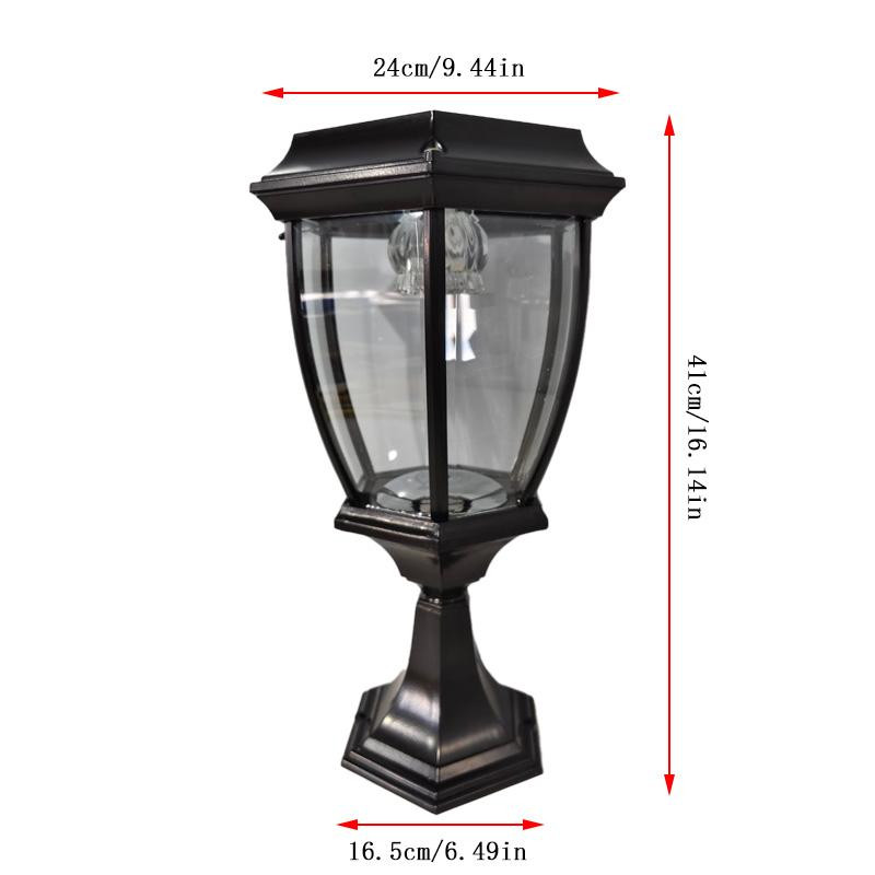 This solar lantern is a game-changer for outdoor lighting! It charges effortlessly during the day and automatically lights up at night, creating a warm, inviting glow. The sturdy aluminum construction and waterproof design make it perfect for any weather, while the elegant glass shade adds a touch of charm to gardens, patios, or walkways. No wiring needed—just place it where you want and enjoy beautiful, eco-friendly light every evening. Highly recommend for both style and functionality!