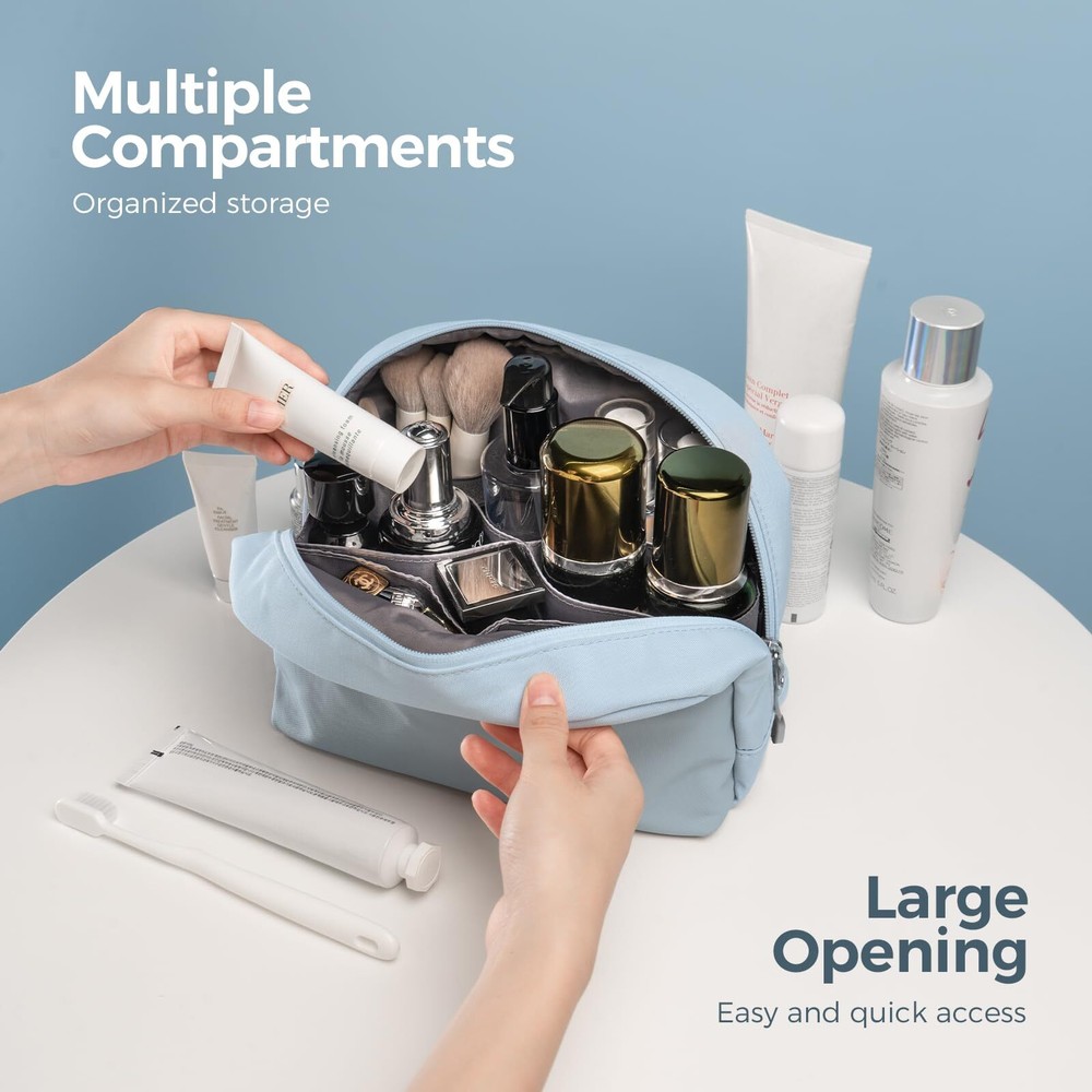 pack all Travel Toiletry Bag, Multi-Compartment Cosmetic Bag, Water-Resistant Makeup Bag for Toiletries, Accessories (Glacier Blue) Premium Material: Crafted from thickened, durable 450D Oxford cloth, offering water resistance and excellent shockproof protection for your items inside Large Opening for Easy Access: The extended zipper allows you to fully open the bag, providing easy access to your toiletries, cosmetics, and other essentials at a glance—no more digging through your bag Stylish Design with Large Capacity: Dimensions: 10.43"x7.1"x3.15", offering ample storage for toiletries, makeup, jewelry, small electronics, and more. Features a chic two-tone quilted design, available in 3 colors Multiple Compartments for Organized Storage: The interior features 9 divided sections for better organization, while 2 exterior pockets provide extra space for small essentials, making it convenient to grab items without opening the main compartment Versatile Use: This toiletry bag is perfect for travel, business trips, and outdoor activities. It also makes a great gift for Christmas, birthdays, or as a thoughtful present for friends, family, or yourself SHIPPING Domestic Buyers - We have confidence in our products, but if you are not fully satisfied please contact us within 30 days of purchase and you will get full refund. - We ship within 3 business days of payment, usually sooner - We offer FREE shipping on all orders! - We only ship to the lower 48 states, no APO/FPO addresses or PO Boxes allowed International buyers – please note: Import duties, taxes, and charges aren't included in the item price or postage cost. These charges are the buyer's responsibility. - Please check with your country's customs office to determine what these additional costs will be prior to bidding or buying. * Order Cancellation Policy ** You can return a product for up to 30 days from the date you purchased it. 1. The seller reserves the right to cancel the special case only due to eBay cancellation fee. 2. The decision of seller is the final. 3. The seller will respond to the cancellation request within 2 business days. Please wait for the result of cancellation. 4. In case the cancellation is not completed by some reasons, the buyer can follow the options below to get the refund. 4.1 The buyer can reject the item when it arrives. 4.2 The buyer can send the item back to the seller within 30 days If the buyer receives item (USA Shipment ONLY). The seller will provide the FREE return label to the buyer when the buyer opens " Return Item" case on eBay by using the reason as "Change my mind" ONLY. 5. When buyer has placed the order. The order will be processed and completed by automatic warehouse system within 5 minutes. In case that buyer sends the cancellation request after 5 minutes of placing the order, the request will be rejected. **Sending direct message to cancel the order is not allowed for every case.* Return Policy For the return case - If buyer would like to return the items for refund or replacement, please CONTACT SELLER to receive the free return label from seller. The refund or replacement will be processed with the tracking number of return label which is provided by seller only. The other ways of return which are not approved by seller will not be processed for the refund or replacement.