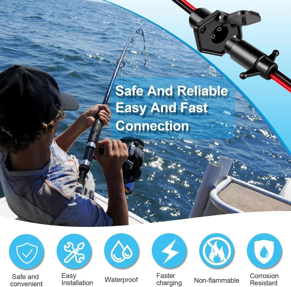 CONTACT US DIRECTLY FOR FREE & PREPAID RETURNS Waterproof Trolling Motor Plug - 12v-24v, 8 Gauge, Quick Connect for Minn Kota B [SAFE AND RELIABLE] Trolling motor plug 12v-24-48v and socket housings are made of corrosion resistant and flame retardant materials with a sealed waterproof cover for waterproofing, Helps you cope with challenging marine weather conditions with ease. More than 10,000 trolling boats have already chosen ATQYZLM brand trolling motor connectors, welcome to join us. [IMPROVE EFFICIENCY] The trolling motor quick connect is made of standard U.S. 8-gauge copper wire, which has a lower resistance than 10-gauge wire, dramatically accelerating battery charging efficiency and extending battery life. [EASY TO USE] The trolling motor plug and receptacle is simple and easy to use, just open the plug cover, connect the male plug to the trolling motor, connect the female plug to the battery, then connect the male and female plugs together. Some customers have reported that it takes less than 5 minutes to set up and have the trolling motor running as expected. [WIDELY USED] Trolling motor connectors are designed to be compatible with a wide range of trolling systems and power supplies. Works with a wide range of boats and motors to help you enjoy your boating experience. [WHAT YOU GET] 1 x 2-prong trolling motor plug, 2 fixing screws. If you have any questions about the product, Please contact us in time, We will provide you a satisfactory solution within 24 hours. REVIEWS The product came very well packaged. I'm very happy. thank you for everything. Seller strongly recommended. This is great! I definitely recommend! Product looks amazing Delivery was fast. Excellent seller, great communication. I advise everyone