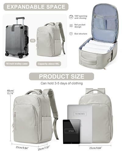 1. This backpack is a game-changer for travel and daily use! It fits everything I need—laptop, clothes, and small essentials—thanks to its smart compartments and 40L capacity. The waterproof material keeps my stuff safe, and the USB charging port is super handy. Perfect for work, gym, or weekend trips. Fast shipping and reliable seller—highly recommend!