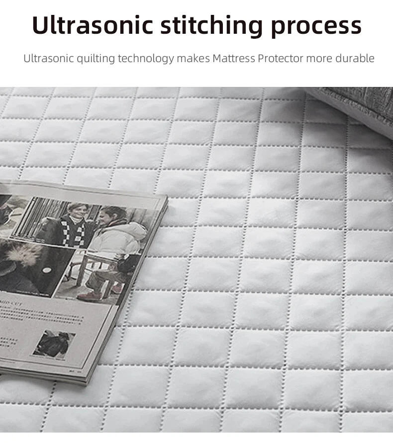 • 100% Polyester Material : Crafted from 100% polyester, this mattress protector cover offers a soft and comfortable touch, ensuring a good night's sleep. • Ultrasonic Feature : Equipped with an ultrasonic feature, it provides superior protection against dust, allergens, and bacteria, keeping your mattress clean and healthy. • Washable Design : The washable design of this mattress protector cover makes it easy to maintain and keep your mattress fresh and hygienic at all times. • Elastic Band Included : It comes with an elastic band that ensures the cover fits snugly on your mattress, providing full coverage and protection. • Origin : Mainland China • Versatile Use : Ideal for all types of mattresses, this protector cover is a versatile addition to any bedroom setting, enhancing the comfort and hygiene of your sleep space.